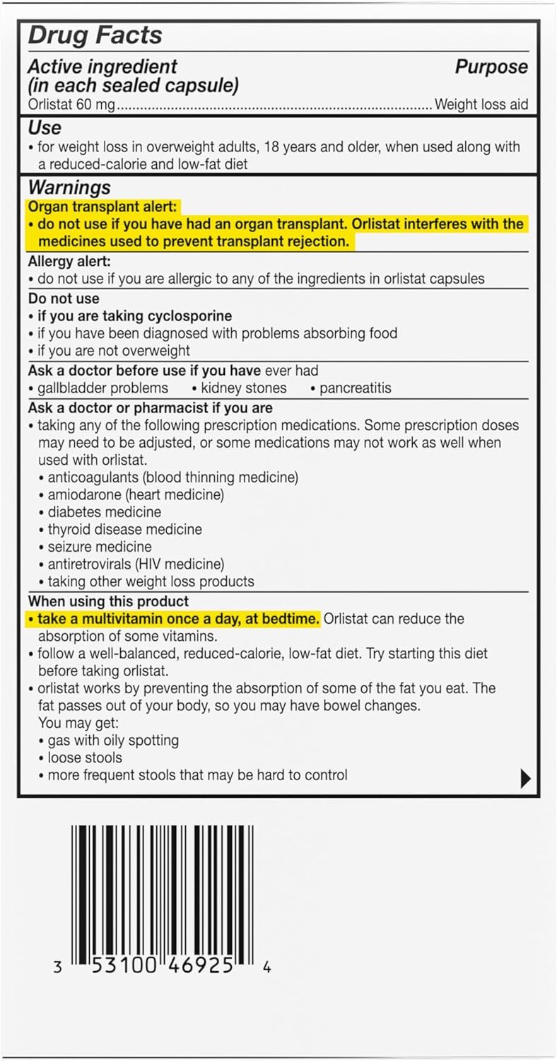 alli (orlistat 60 milligram capsules) is your smart edge for weight loss. Among weight loss products, it’s Orlistat, the active ingredient in alli, is a lipase inhibitor and works by binding to specific enzymes that break down fats. As a result, about 25 percent of the fat you consume is not absorbed and passes through the digestive system. Since the calories associated with this unabsorbed fat are not used, the number of calories that enter your system is reduced. You’re ready with alli by your side. alli (orlistat 60 milligram capsules) is a weight loss aid for overweight adults, 18 years and older, when used along with a reduced calorie and low fat diet. Read and follow label directions. alli orlistat 60 mg capsules weight loss pill refill pack (120 capsules) contains: A read me first brochure and up to 40 day supply. It is designed for people who are already using alli and have previously purchased the starter pack. Helps you lose more weight than dieting alone. Read the enclosed brochure for other important information. Diet and exercise are the starting points for any weight loss program. If you have a product concern or any other question, please refer to the phone number on the package to reach our customer service team directly. Satisfaction Guarantee If for any reason you are not satisfied with any GSK Consumer Healthcare product, GSK Consumer Healthcare will provide you with a reimbursement within 45 days of the date of purchase. Please note that because GSK is unable to control the quality of our products sold by unauthorized sellers, the Guarantee is not available for products purchased from unauthorized sellers due to potential quality issues outside GSK’s control. Please contact GSK Consumer Healthcare directly for more information. By Alli