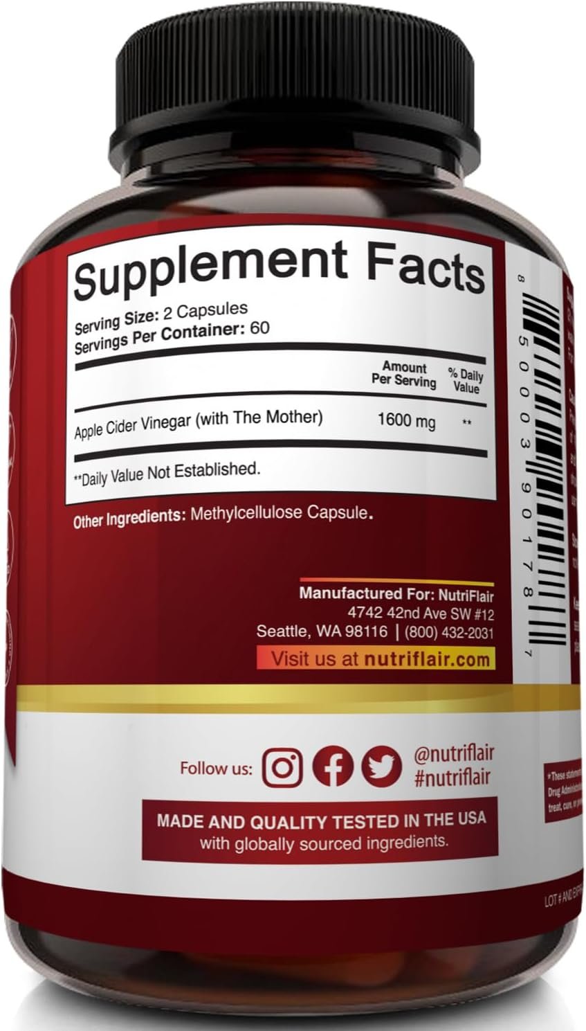 Introducing NutriFlair Apple Cider Vinegar Capsules NutriFlair is offering 120 capsules with tested and proven results. Get the weight reduction results you want with this all-natural supplement. Toss those generic low-quality pills away and make sure to give our NutriFlair capsules a try.