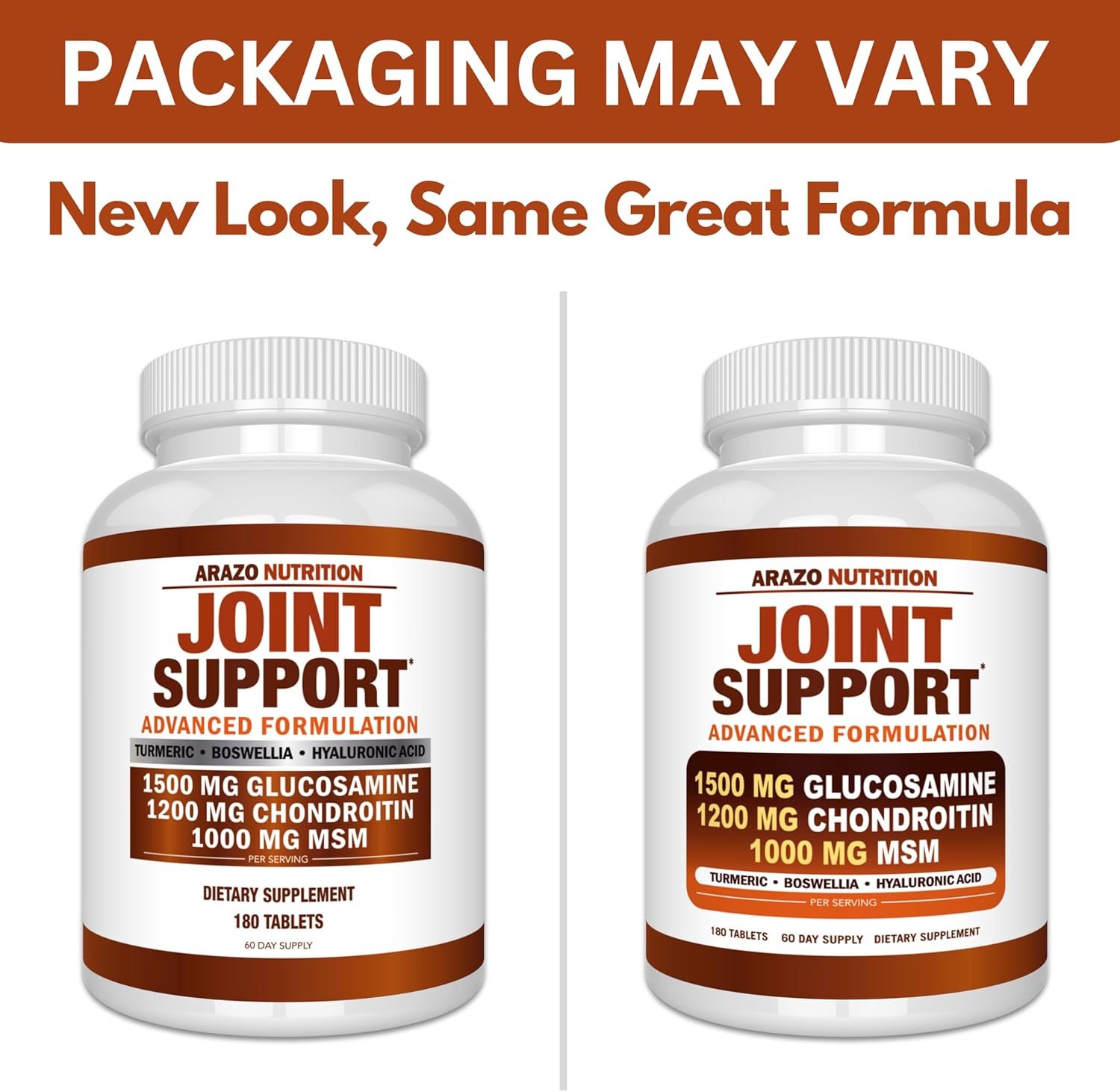 EXTRA STRENGTH INGREDIENTS: Glucosamine 1500mg, Chondroitin 1200mg, MSM 1000mg with Turmeric, Boswellia, Hyaluronic Acid for better joint health, range of motion and comfort. Helps rebuild and maintain joint flexibility and ease discomforts that comes with age, weight, or sports related stress.