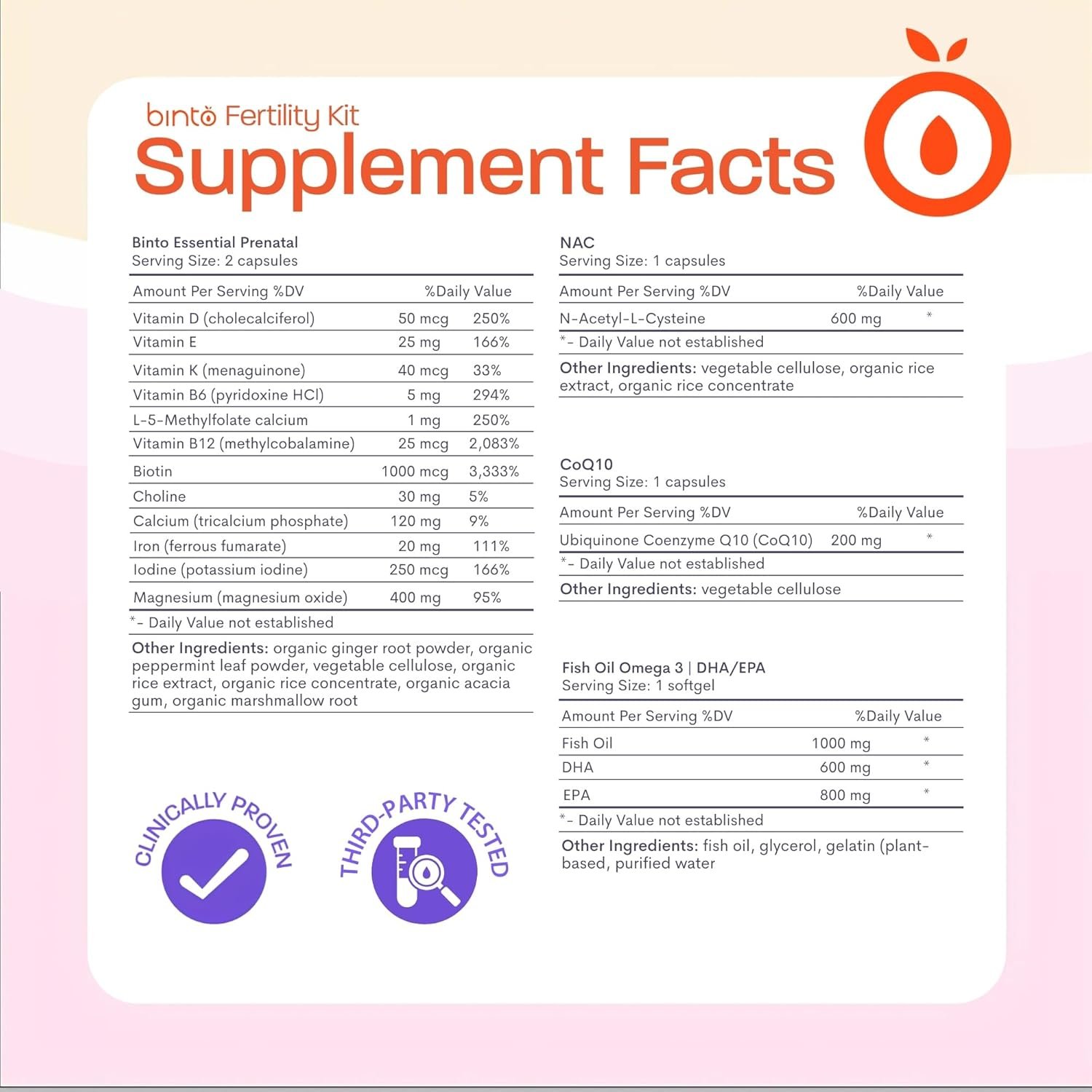Complete Fertility Care: Designed CoQ10, NAC, omega fats from Fish Oil, and a comprehensive prenatal vitamin with folic acid, to naturally support your fertility journey