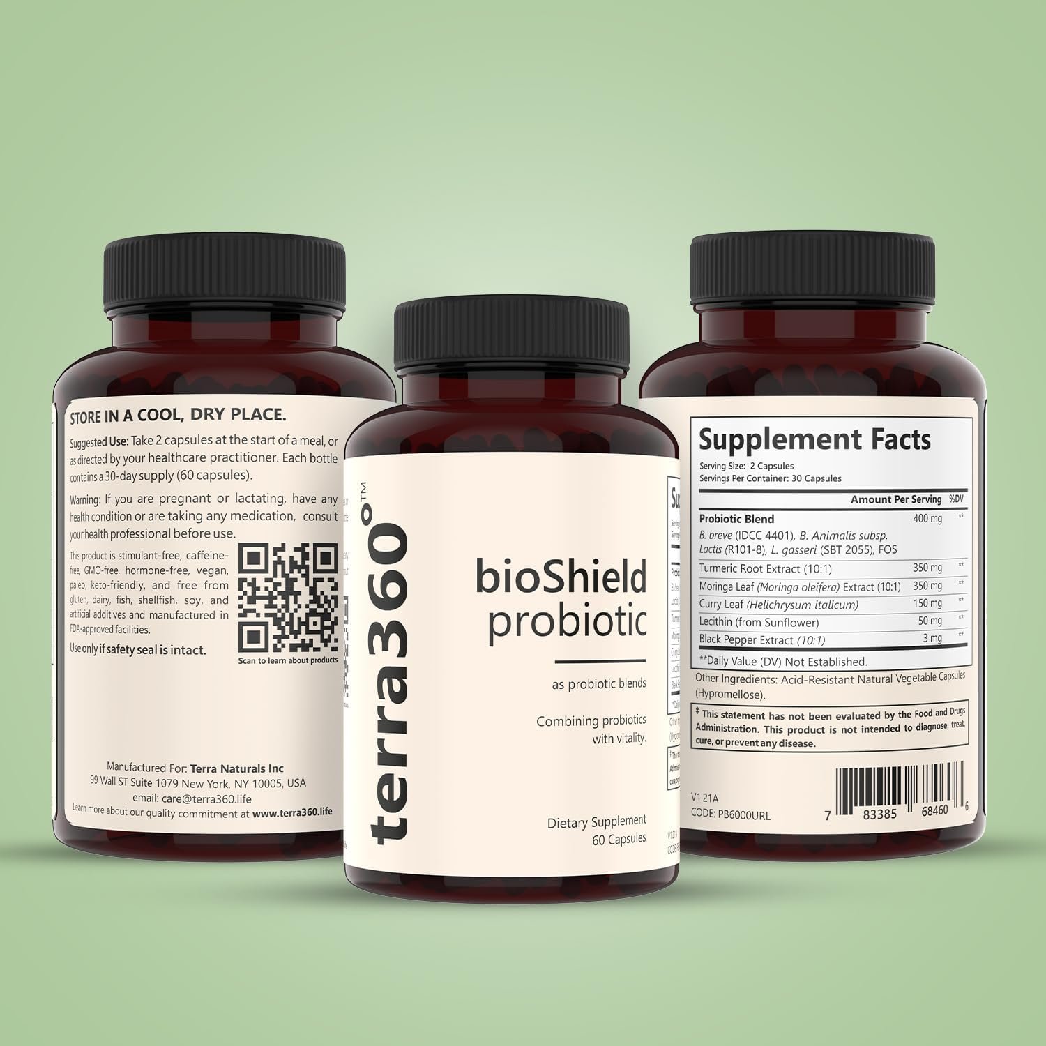 Comprehensive Digestive and Immune Support: terra360° BioShield Probiotic provides 68.2 billion CFUs per serving with three potent probiotic strains, aiding in digestion, gut health, and immune function for a well- balanced microbiome.