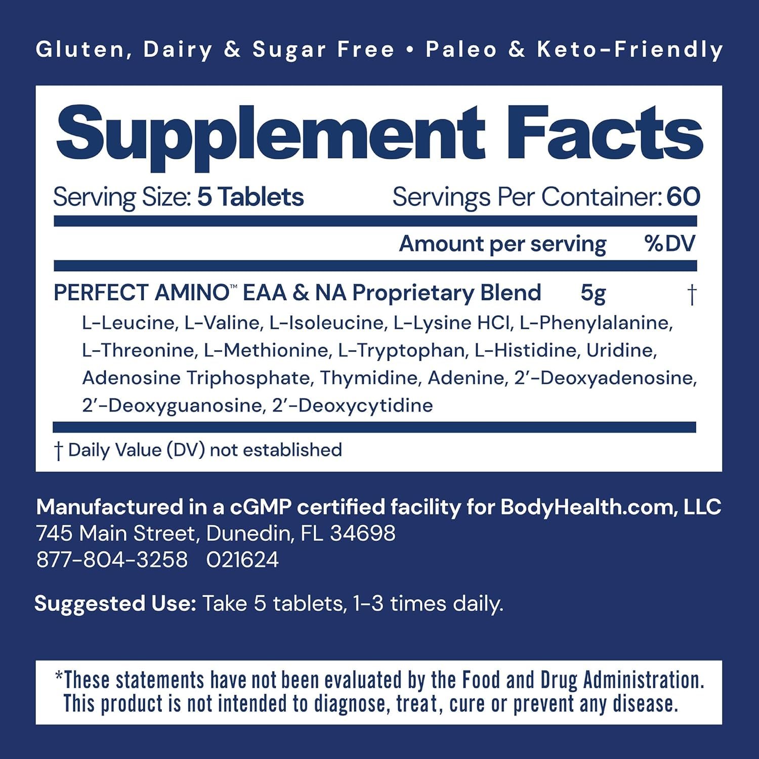 WILL NOT BREAK A FAST. BCAAs amino acids are free from sugars, yeast, gluten, soy, corn, wheat, rice, and preservatives. Perfect Aminos is vegan sourced, keto, and produced in cGMP Certified facilities in the USA for assured quality and safety.