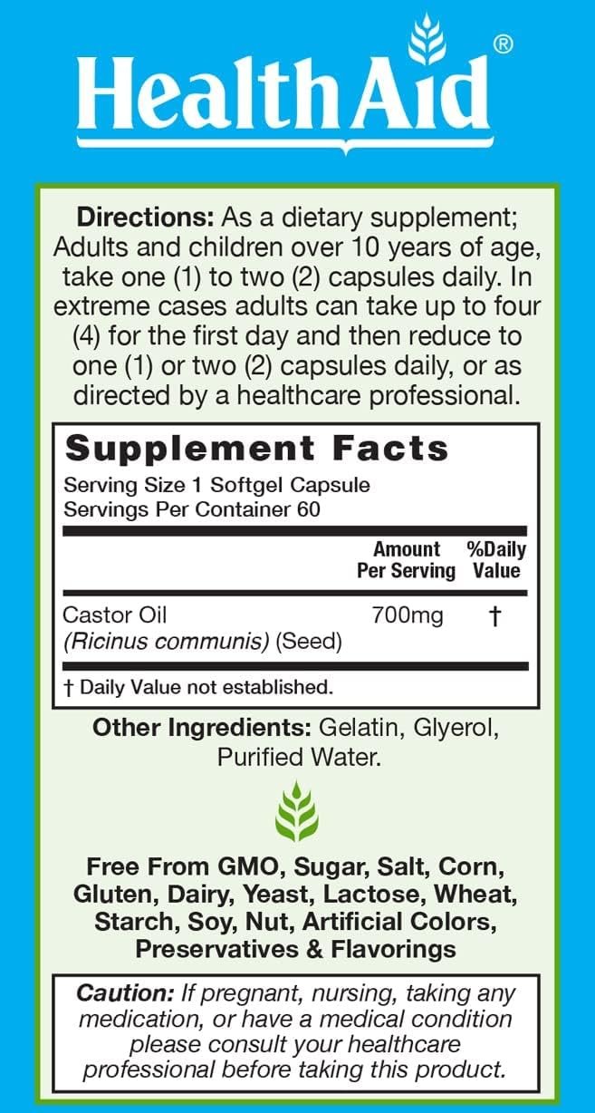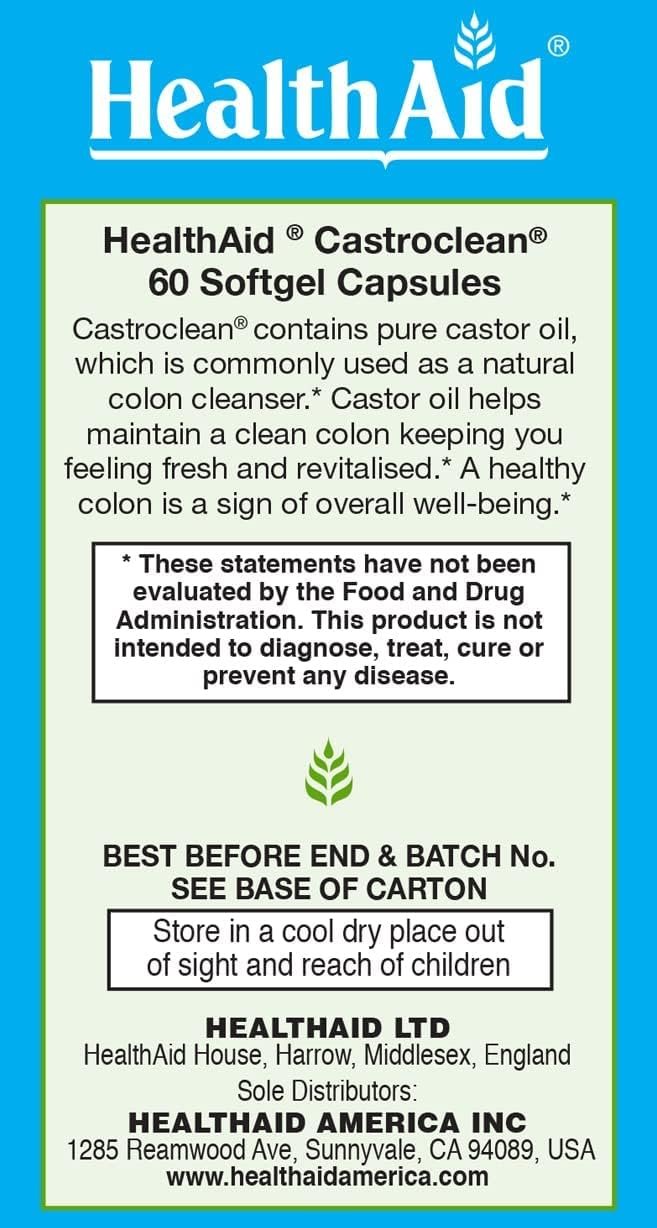 Castroclean contains pure castor oil, which is commonly used as a natural colon cleanser. Castor oil helps maintain a clean colon keeping you revitalized. A healthy colon is a sign of overall well being* Free From GMO, Yeast, Gluten, Wheat, Lactose, Dairy, Corn, Soy, Sugar, Salt, Artificial Preservatives & Flavorings
