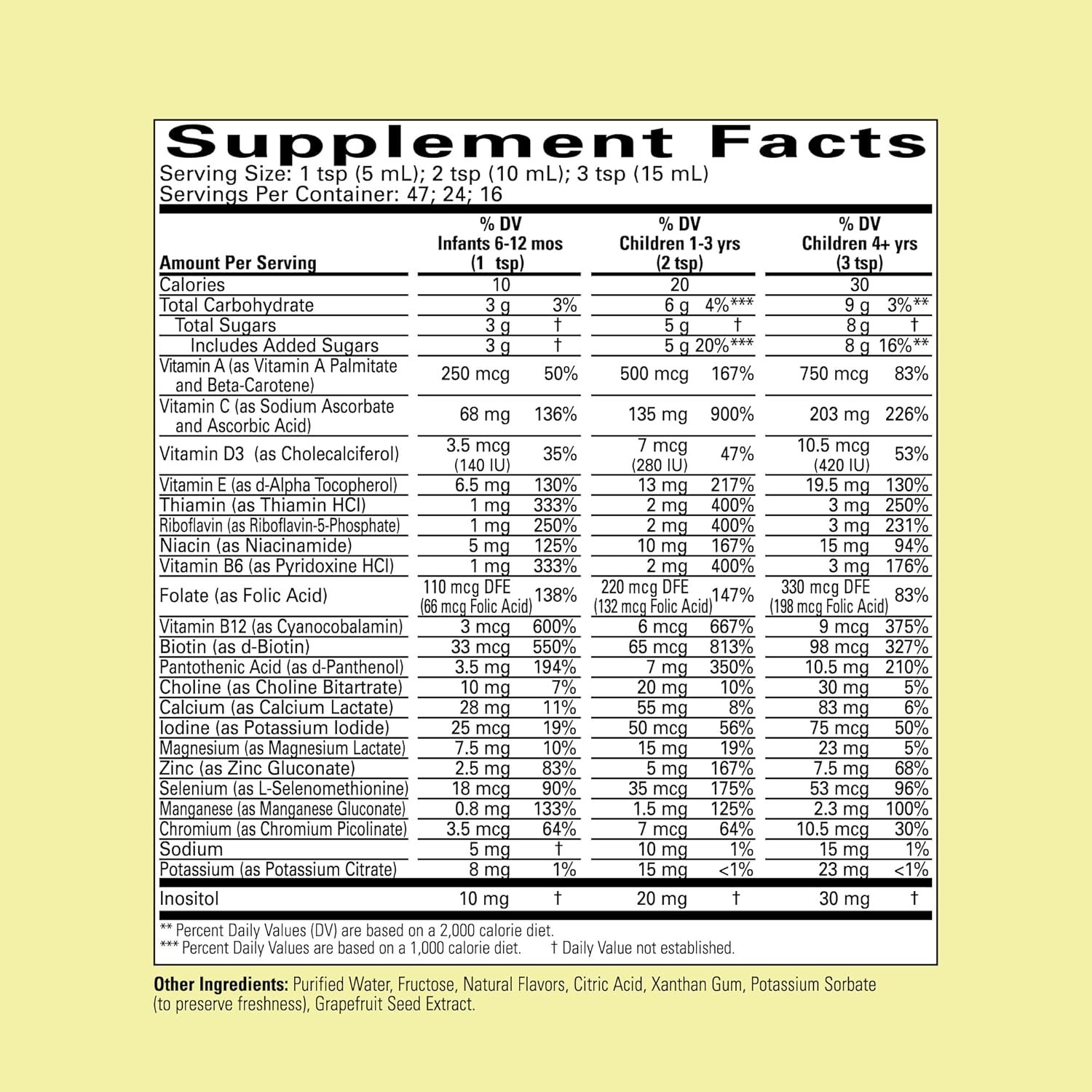 RECOMMENDED DOSAGE – Infants 6-12 months: 1 tsp daily. Children 1-3: 1-2 teaspoons daily. Children 4+ years: 2-3 teaspoons daily
