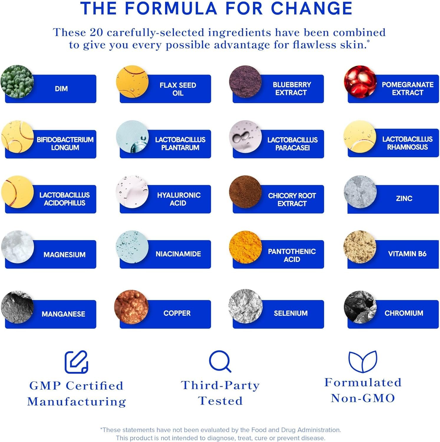 MICROBIOME HEALTH: Your gut microbiome is absolutely foundational to glowing, radiant skin. That’s why Clear-3 includes 18 billion CFU of Lactobacillus and Bifidobacterium probiotic strains shown to support balanced, hydrated, healthy looking skin.*