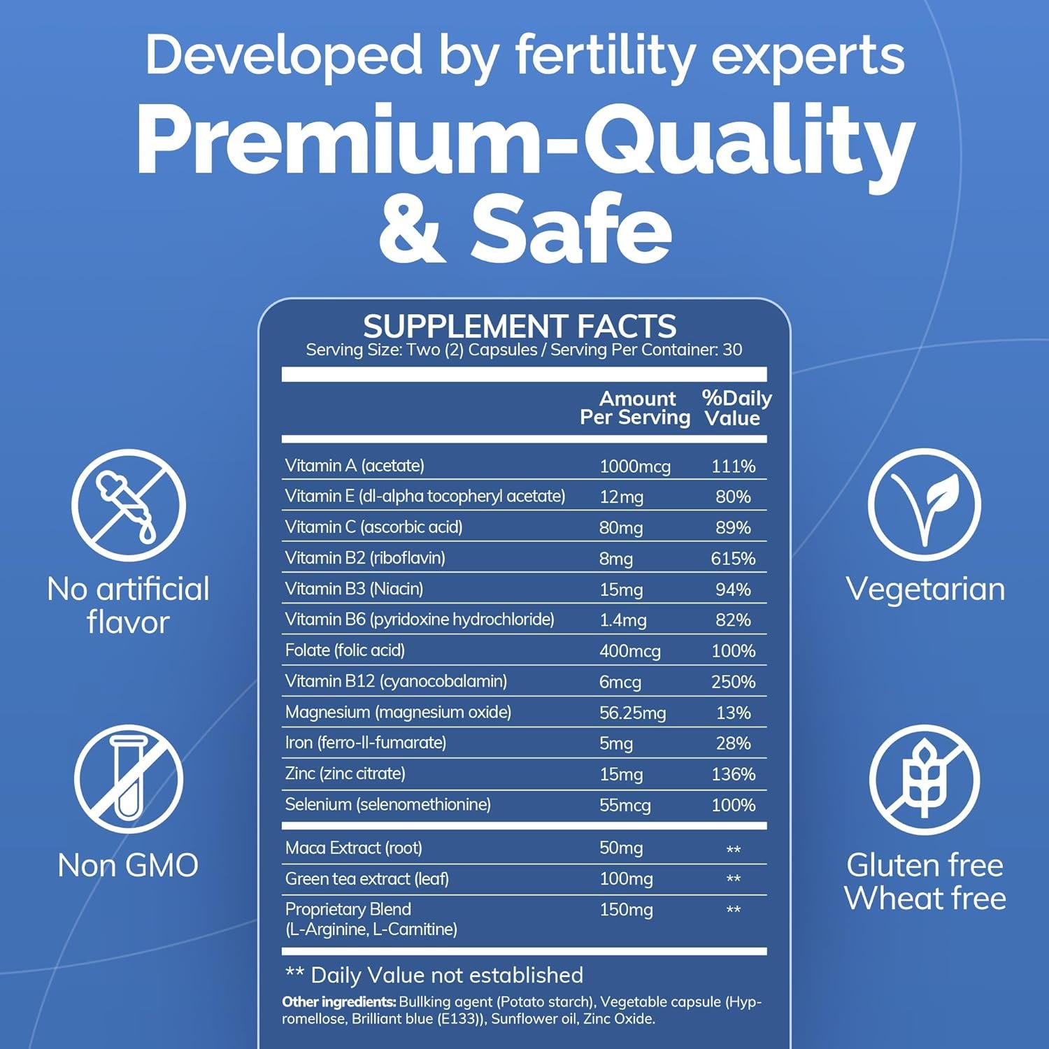 Male Reproductive Health: Enhances Sperm Quality with L-Carnitine shown in clinical studies to improve sperm motility and function, which are critical factors for conception. Supports Hormonal Balance with Zinc and Vitamin D essential for maintaining healthy testosterone levels, significantly impact fertility and male reproductive health.