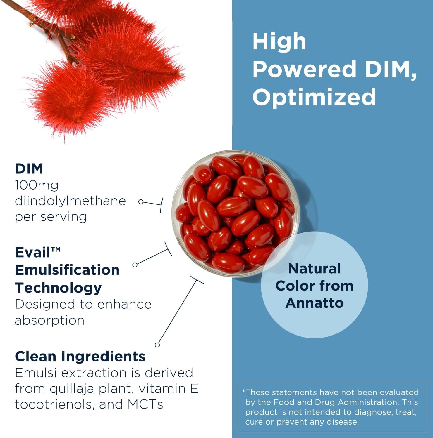Superior Absorption – Due to its crystalline structure, absorption of DIM supplements is minimal when given orally. For this reason, DIM-Evail has been manufactured utilizing the Designs for Health Evail process for enhanced nutrient absorption and bioavailability.