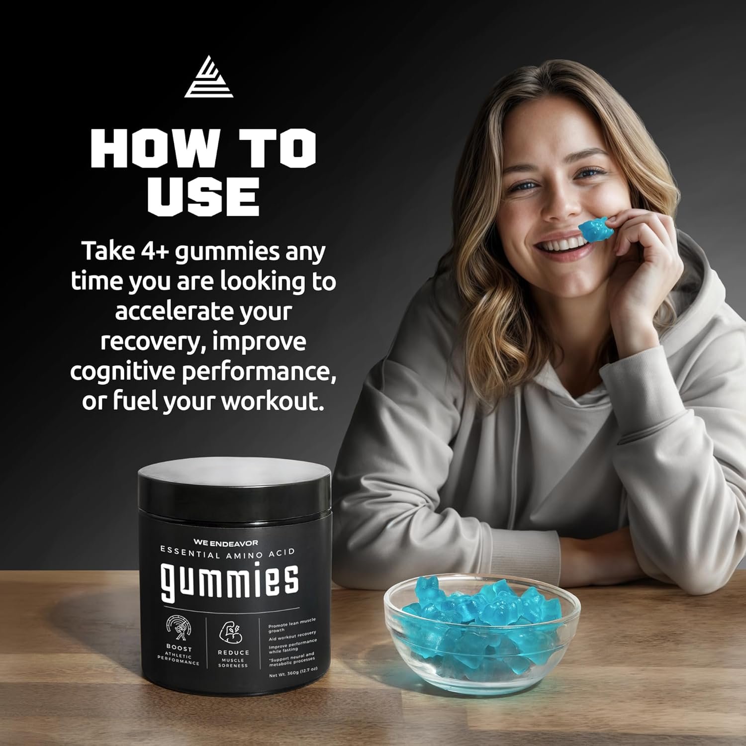 Endeavor Essential Amino Acids Gummies 5g Serving Sugar Free Supplements For Men and Women, EAA Gummy Vegan 120 Count 30 Day Supply