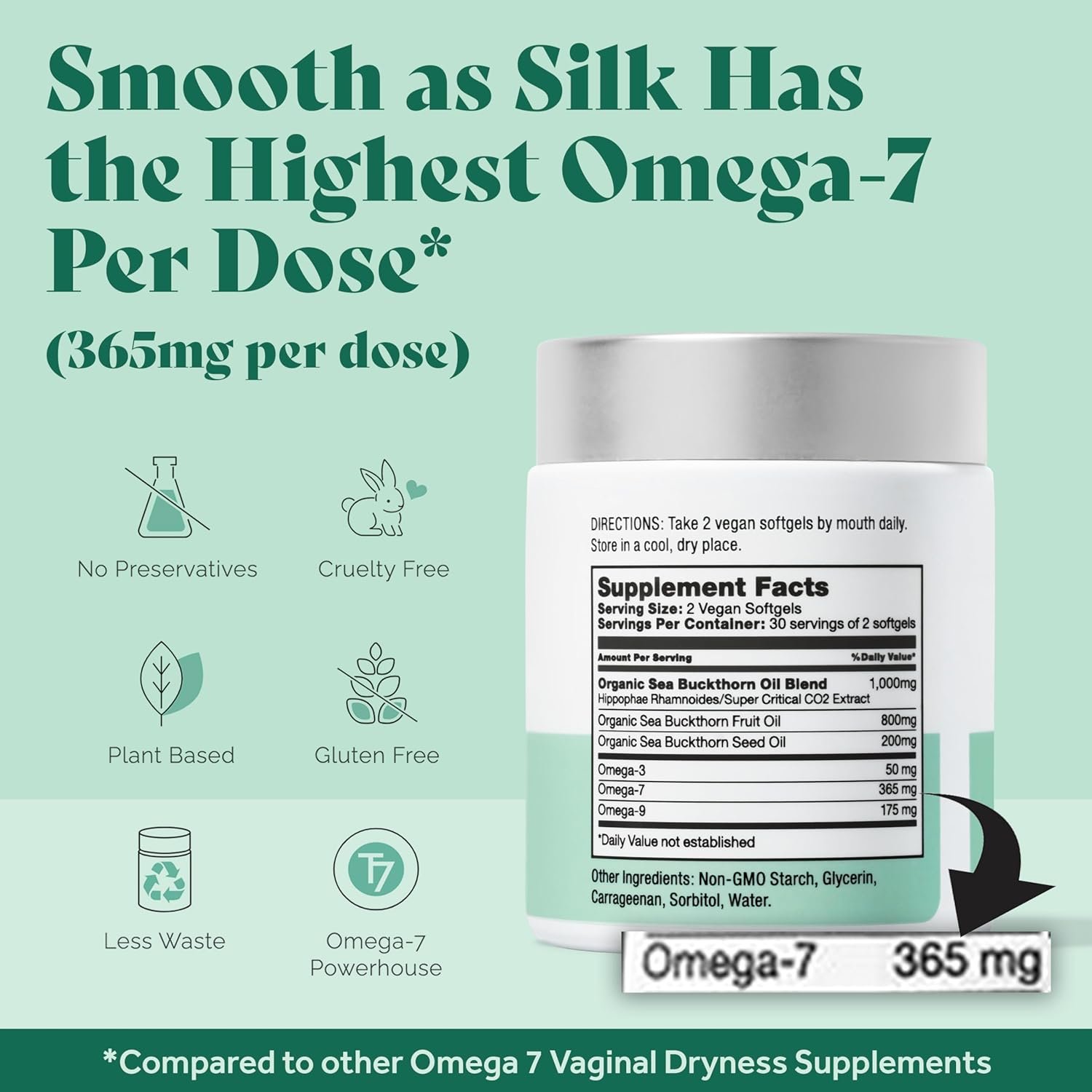GOODBYE DRYNESS – Ever notice how Omega 7 rhymes with wet? Maybe it’s just us—with decades of experience using the Sea Buckthorn berry to help bring back moisture to women with vaginal dryness.