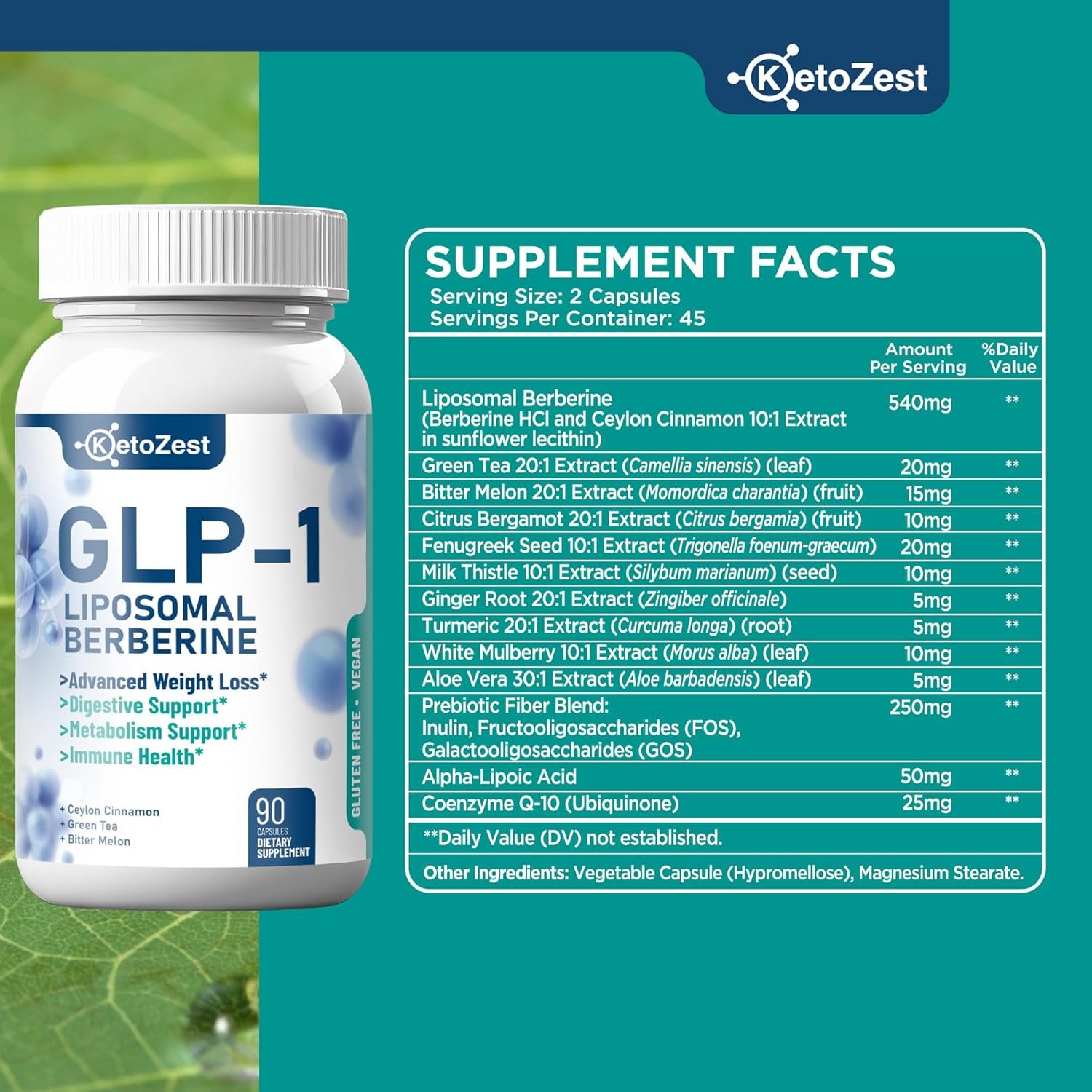 Advanced 15-in-1 GLP-1 Support for Weight Management: KetoZest GLP-1 Support combines a powerful 15-in-1 blend of Liposomal Berberine, Ceylon Cinnamon, Green Tea Extract, and other selected botanicals and nutrients to naturally support GLP-1 activity, which plays a key role in regulating appetite and energy levels. The formula acts as a natural appetite suppressant, supports metabolism, balances hunger, and promotes energy. A great addition to a balanced whole-food diet and active lifestyle.