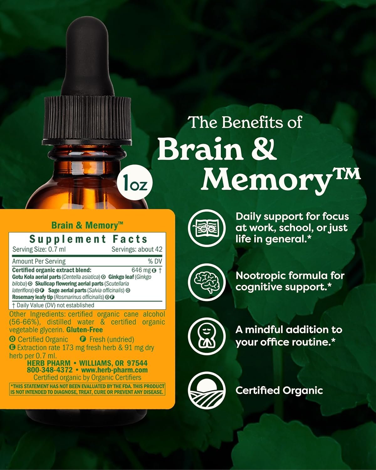Herb Pharm Brain and Memory Herbal Formula with Ginkgo for Memory and Concentration