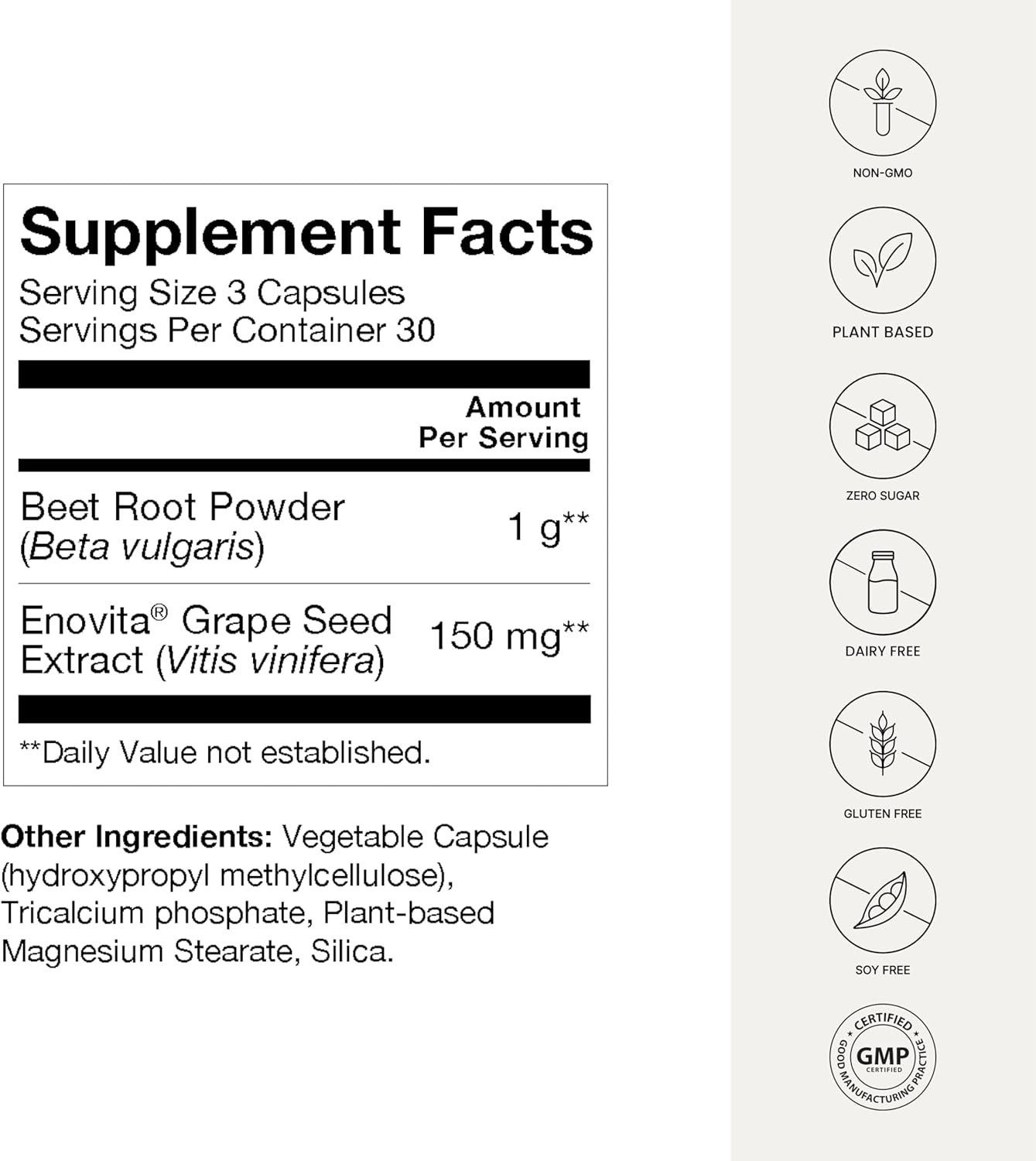 SUPPORT BLOOD PRESSURE & ENERGY: SuperBeets Beet Root Capsules are powered by French Grape Seed Extract. Support blood pressure and energy levels. These beet root supplements act as a blood pressure support supplement.