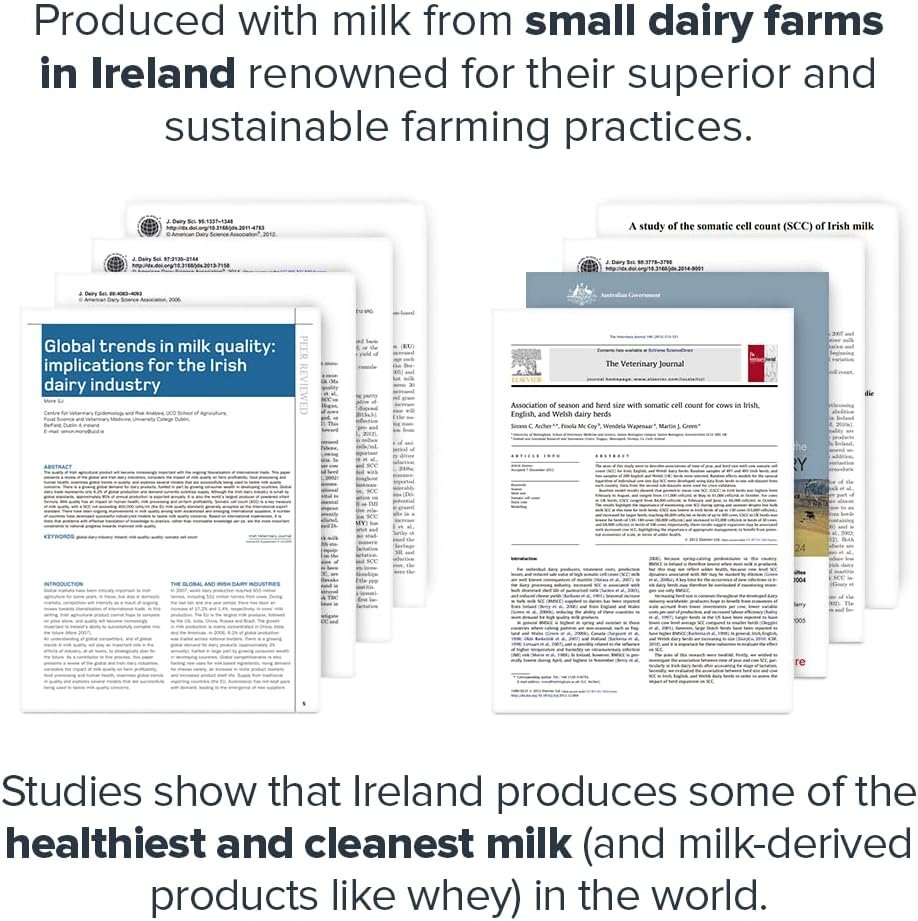 Get our naturally sweetened and flavored whey isolate protein powder made with hormone-free Truly Grass Fed milk from Ireland that’s gentle on the stomach, easy to digest, and doesn’t cause bloating or discomfort.