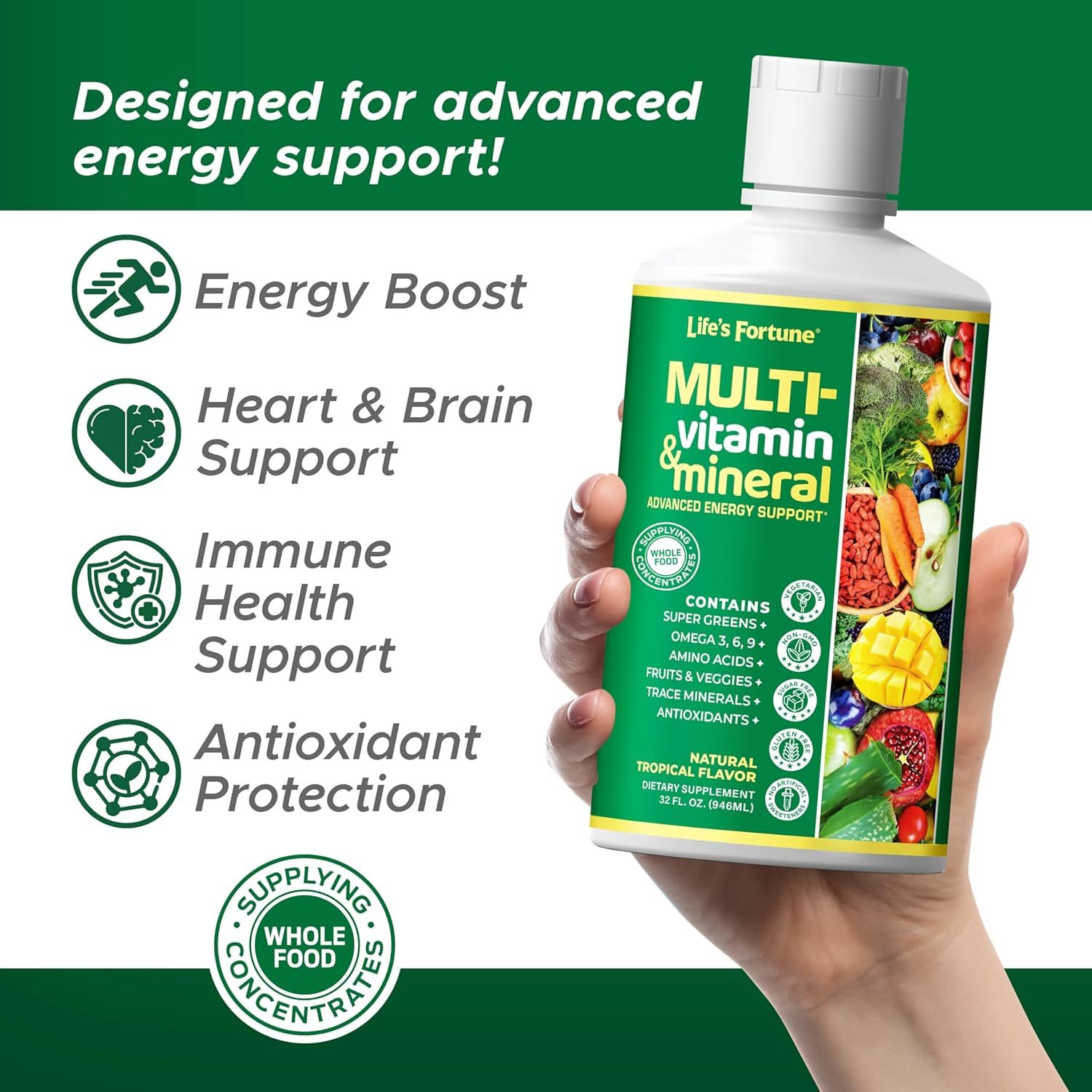Essential Daily Vitamins & Minerals: Fuel your day with a powerful blend of essential nutrients in an easy-to-take liquid form. Packed with vitamins A, B, C, D, E, K, Biotin, Zinc, Magnesium, potassium, Omega Blend, natural fruits, L- Arginine, antioxidants, and more.