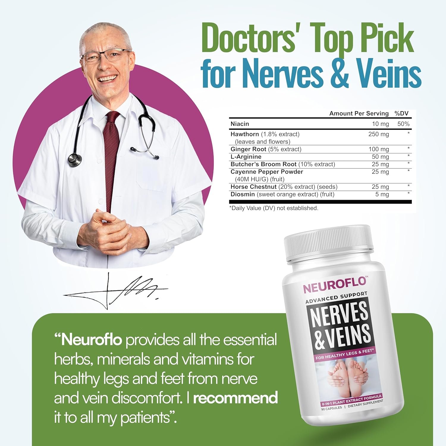 ✅ Powerful, Clinically Researched Ingredients for Legs & Feet NeuroFlo combines herbs, vitamins, and minerals shown in clinical studies to support circulation, nerve comfort, and vascular health in toes, feet, ankles, calves, and legs. Formulated for people who want daily, natural support for healthy leg function, mobility, and overall vitality