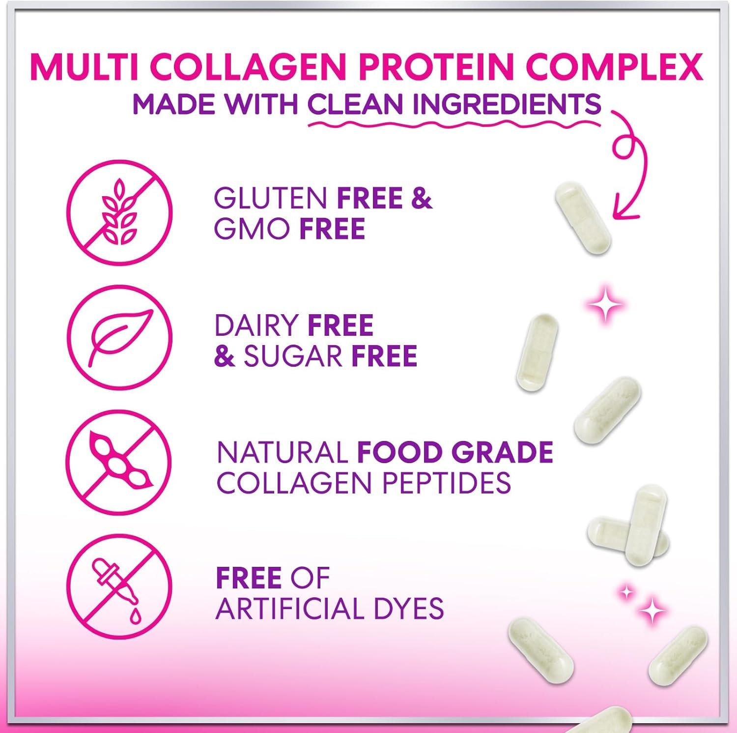 Multi Collagen Five-Type Blend: Multi collagen peptides, Types I, II, III, V & X, in easy collagen capsules; This collagen supplement uses hydrolyzed collagen peptides for fast absorption supporting hair, skin, nails, and joints