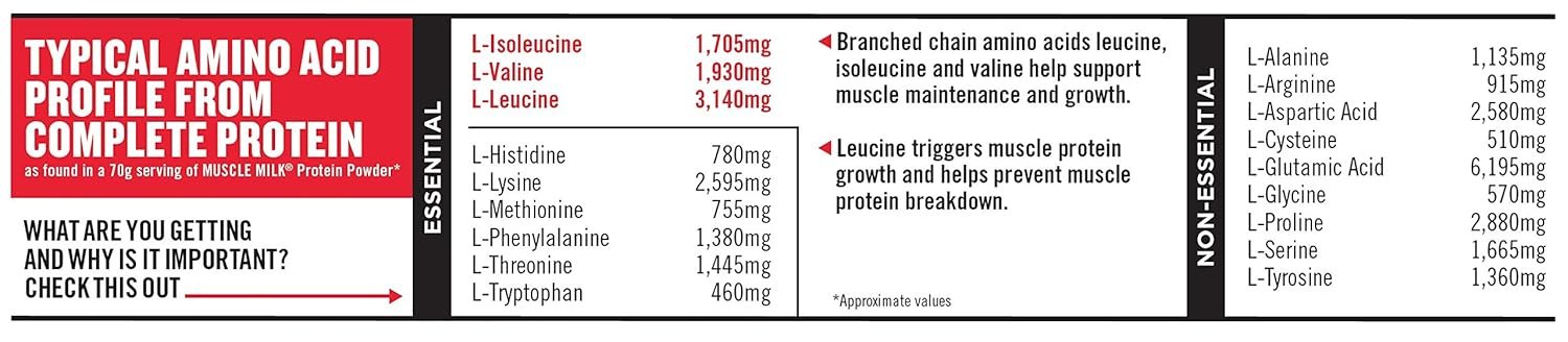 KEY FEATURES – Based on 1 serving, Muscle Milk Genuine Protein Powder contains 32g high-quality protein, 2g sugar, and an excellent source of Calcium and Vitamins A, C & D