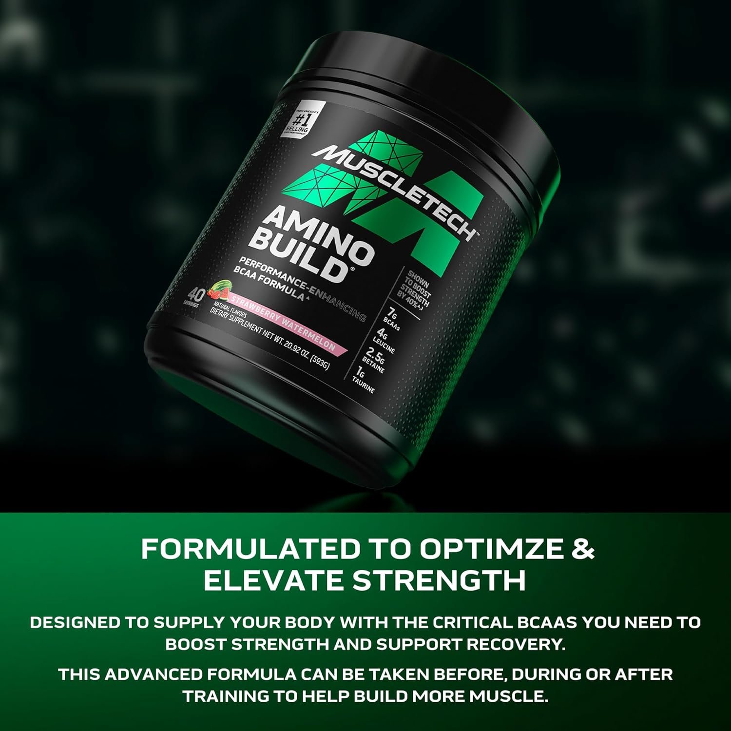 Performance-Enhancing BCAAs & Electrolytes: MuscleTech Amino Build is designed with the competitive athlete in mind. Formulated with 7g of critical BCAAs to help boost strength and support recovery. Strawberry Watermelon flavor. 40 servings.