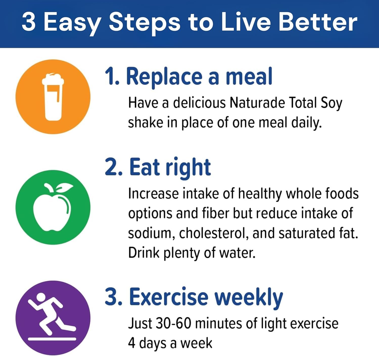HOW TO USE: Add 2 scoops of Naturade Total Soy to 8 oz. of cold water or your favorite beverage and shake or stir with a spoon until smooth. Our protein shake is only 140 calories per serving and supports your weight management