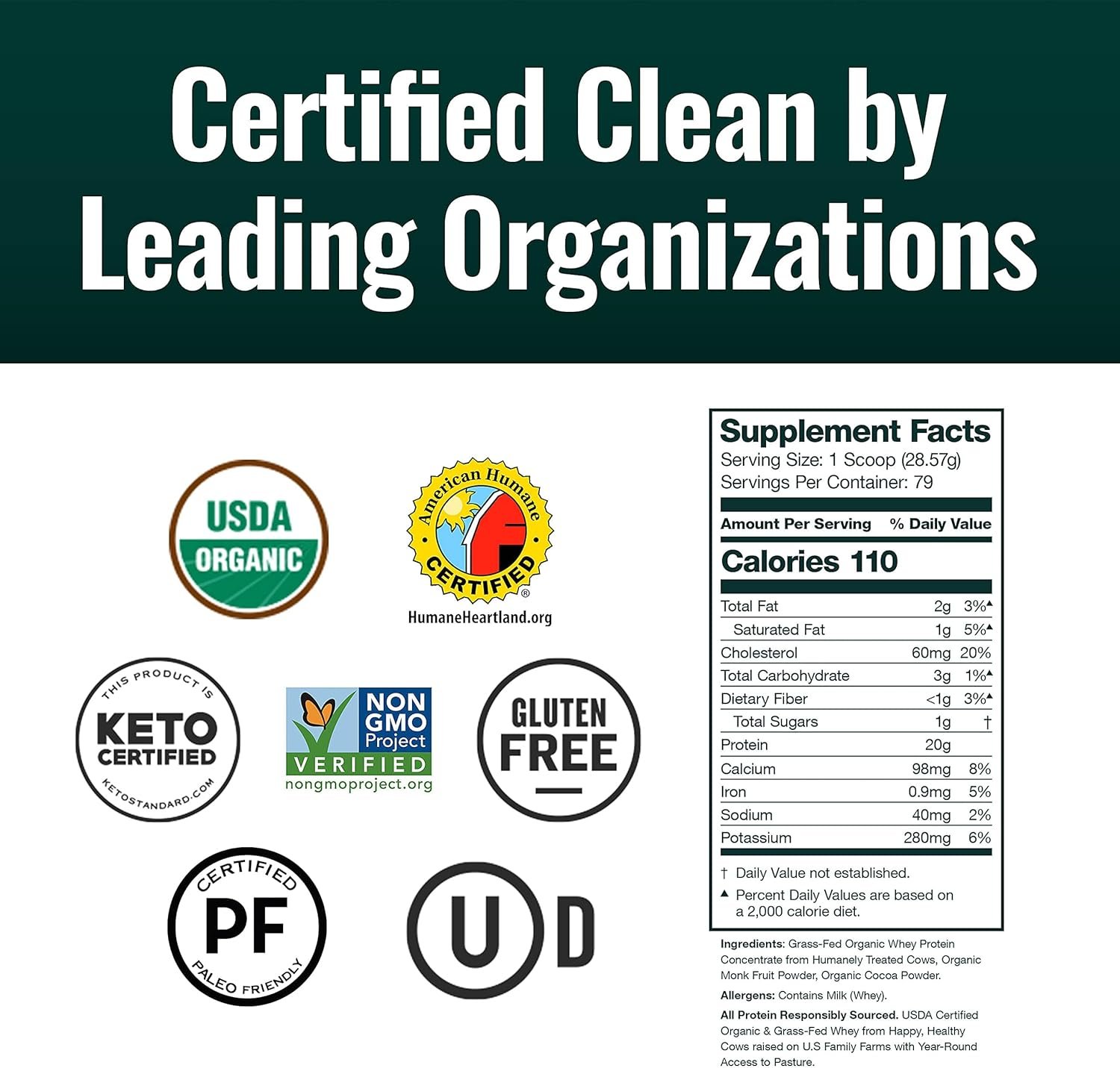 Grass Fed Organic Whey Protein Powder – The original Organic Grass Fed Whey is now stevia-free and sweetened only with organic Monk fruit! Impeccable quality, delicious taste, and USDA organic, grass-fed whey protein. No additives, sugar, fillers, or lecithin. It is a “farm to shake” experience that can’t be beat!