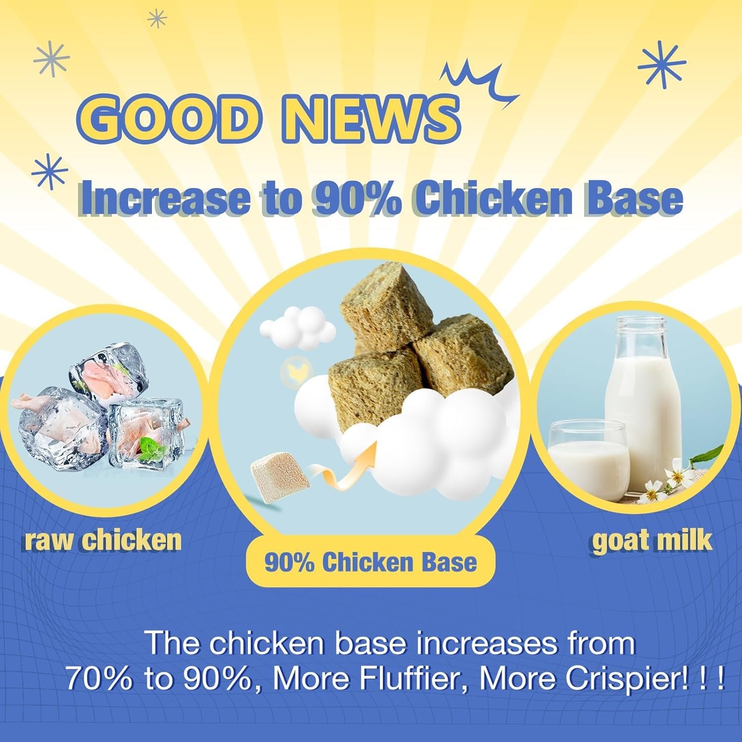 FREEZE-DIRED CHEWS: In some dog vitamins and supplements, these vitamins and minerals are degraded in preparation and storage, we have adopted freeze-dried to preserve the original nutritional value to the greatest extent, which is where we are superior to other brands. We add raw chicken and goat milk to provide the best quality ingredients and taste. TIPS: Due to freeze-dried chews are crunchy. If is a young dog or an old dog, it is recommended that you soak the chew in water for two minutes.