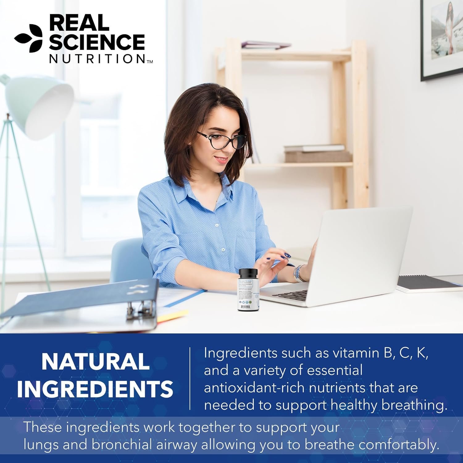 NATURAL INGREDIENTS. Ingredients such as vitamin B, C, K, and a variety of essential antioxidant-rich nutrients that are needed to support healthy breathing. These ingredients work together to support your lungs and bronchial airway allowing you to breathe comfortably.