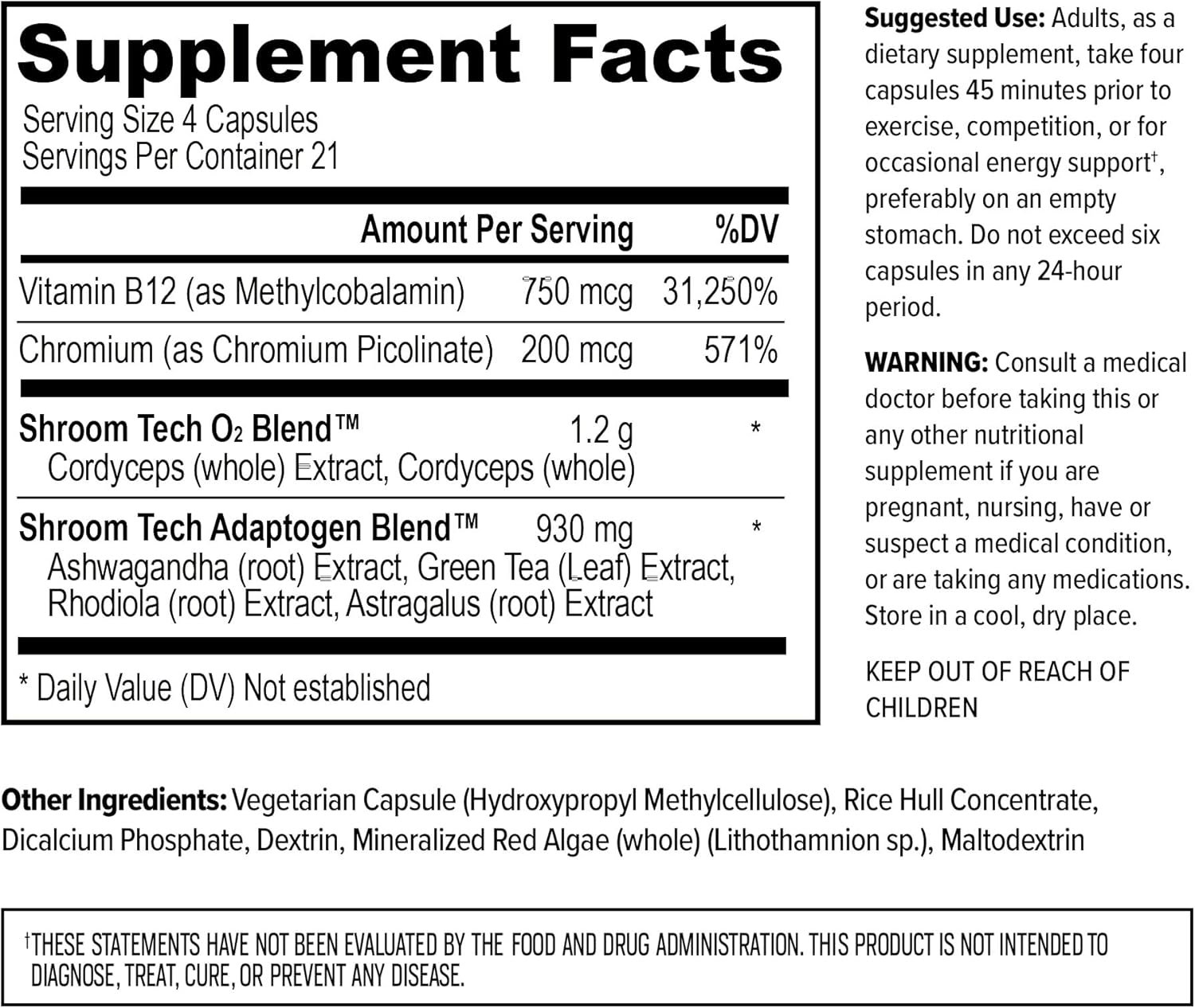 Powerful Adaptogens: With ingredients like Rhodiola Rosea and Ashwagandha, Shroom Tech SPORT supplement is developed to help fight exercise fatigue and enhance aerobic capacity