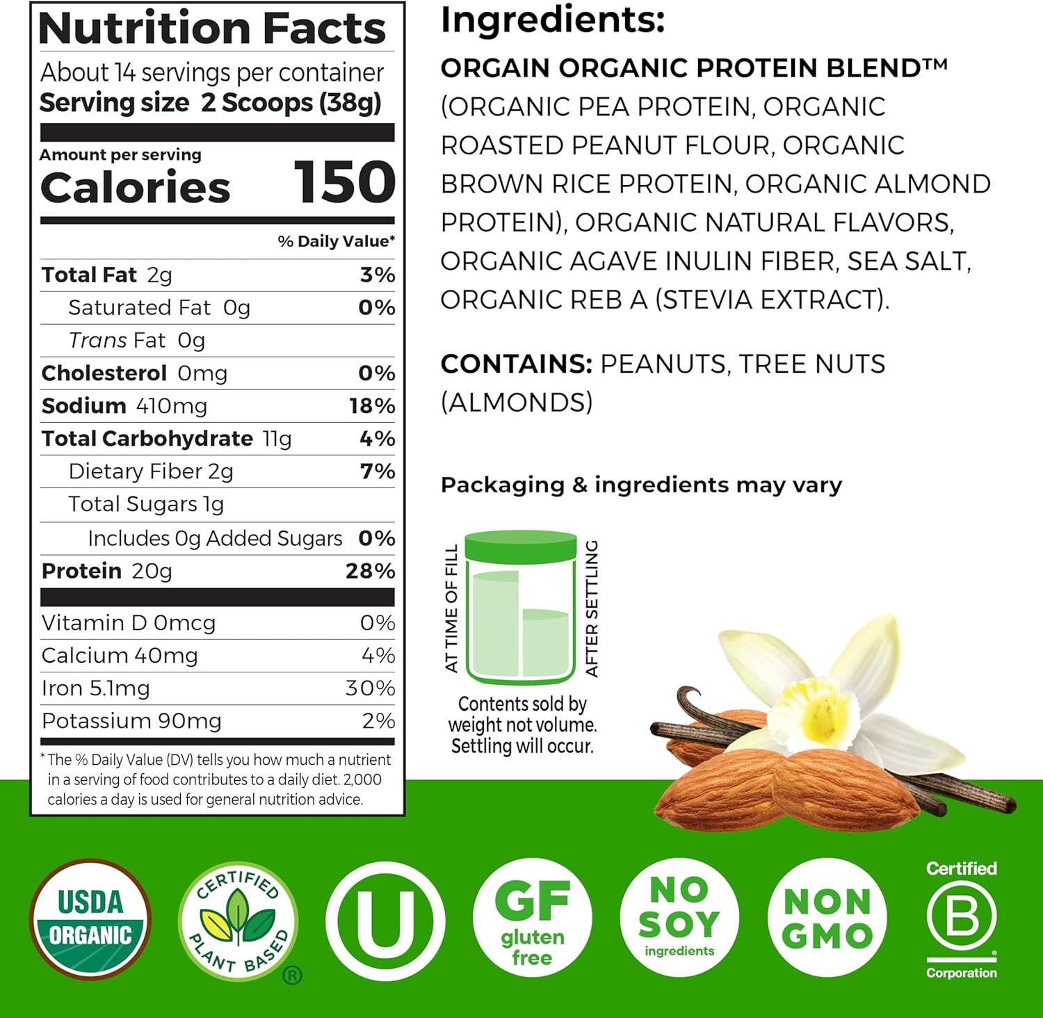 HIGHER STANDARDS: This product is vegan, gluten-free & Non-GMO. There are no dairy or soy ingredients, and no artificial flavors, preservatives or sweeteners.