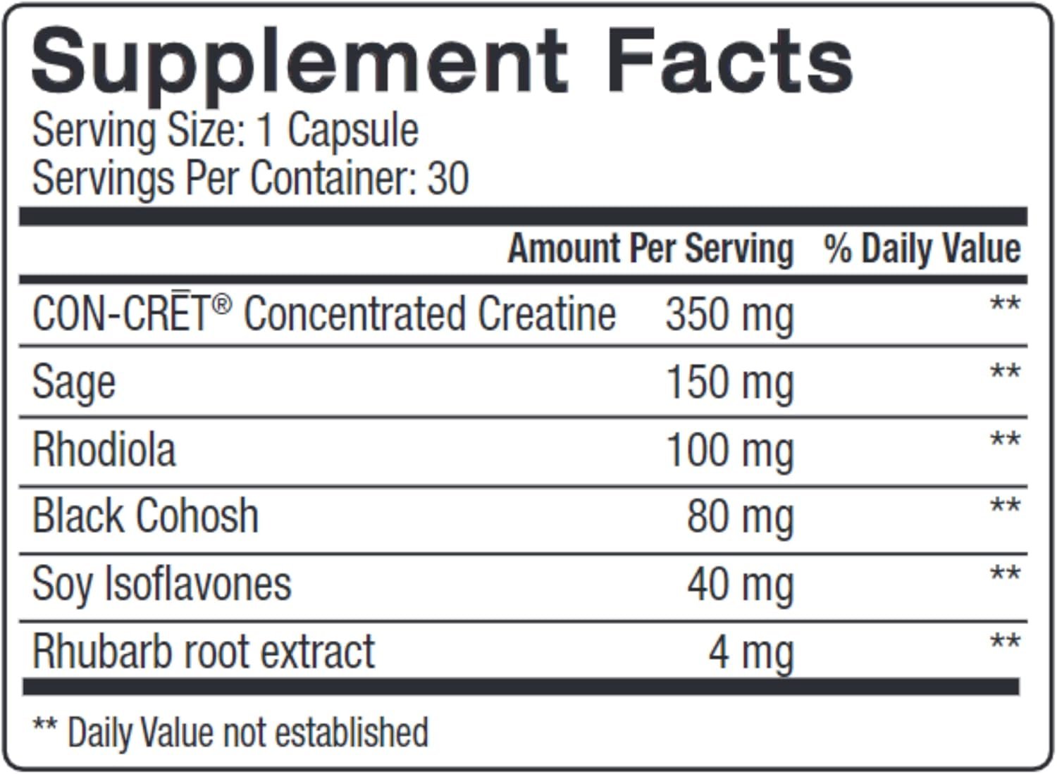 Energy & Cognitive Support: Featuring CON-CRĒT Creatine for cellular energy and Rhodiola to support brain health, focus, and clarity, our menopause supplement helps maintain optimal cognitive function and energy levels throughout menopause and perimenopause.