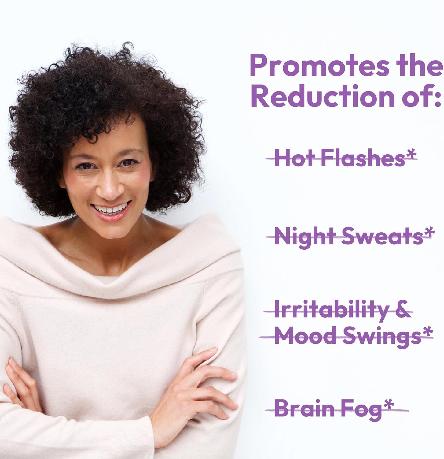 Helps with Menopause: Our menopause supplement for women promotes the reduction of hot flashes, night sweats, mood swings, irritability, and brain fog, making them ideal for those seeking effective menopause support for women.