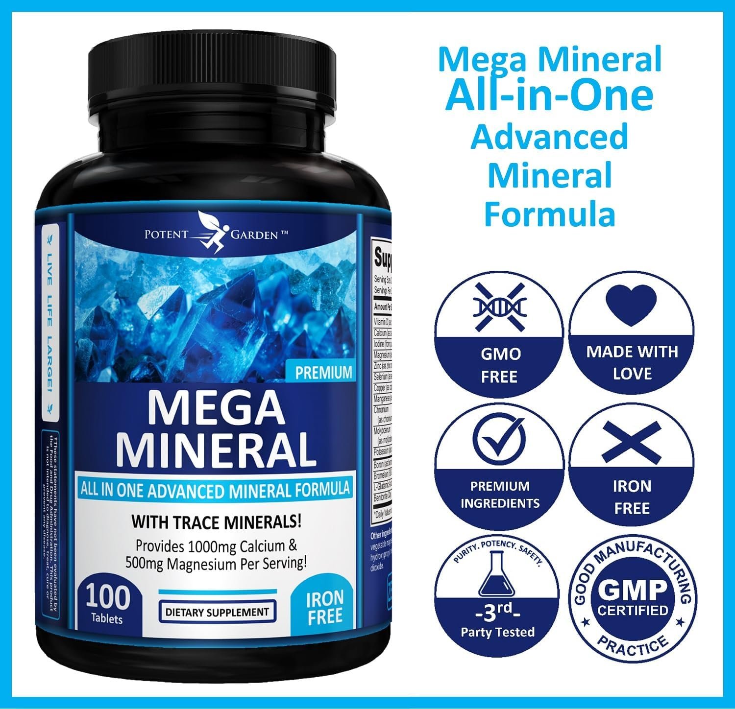 Premium Ingredients. Mega Minerals is a multi mineral supplements for men and women that includes calcium, potassium, magnesium, zinc, iodine, boron, chromium, copper, manganese, selenium, trace minerals molybdenum & more, a complete multi mineral supplement formula filled with premium ingredients with the quality you expect.