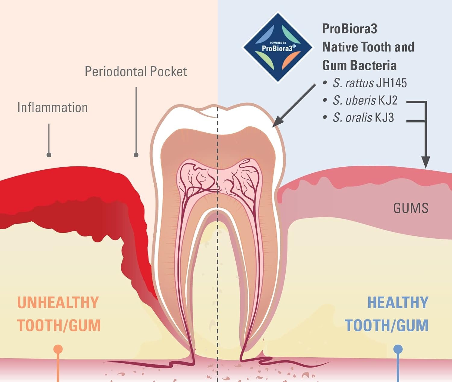 A Healthy Body Starts with a Healthy Mouth: Harmful oral bacteria cause bad breath, tooth decay, and gum disease. Left untreated, they can lead to serious health problems affecting the heart, lungs, and kidneys. ProBiora helps prevent these issues.