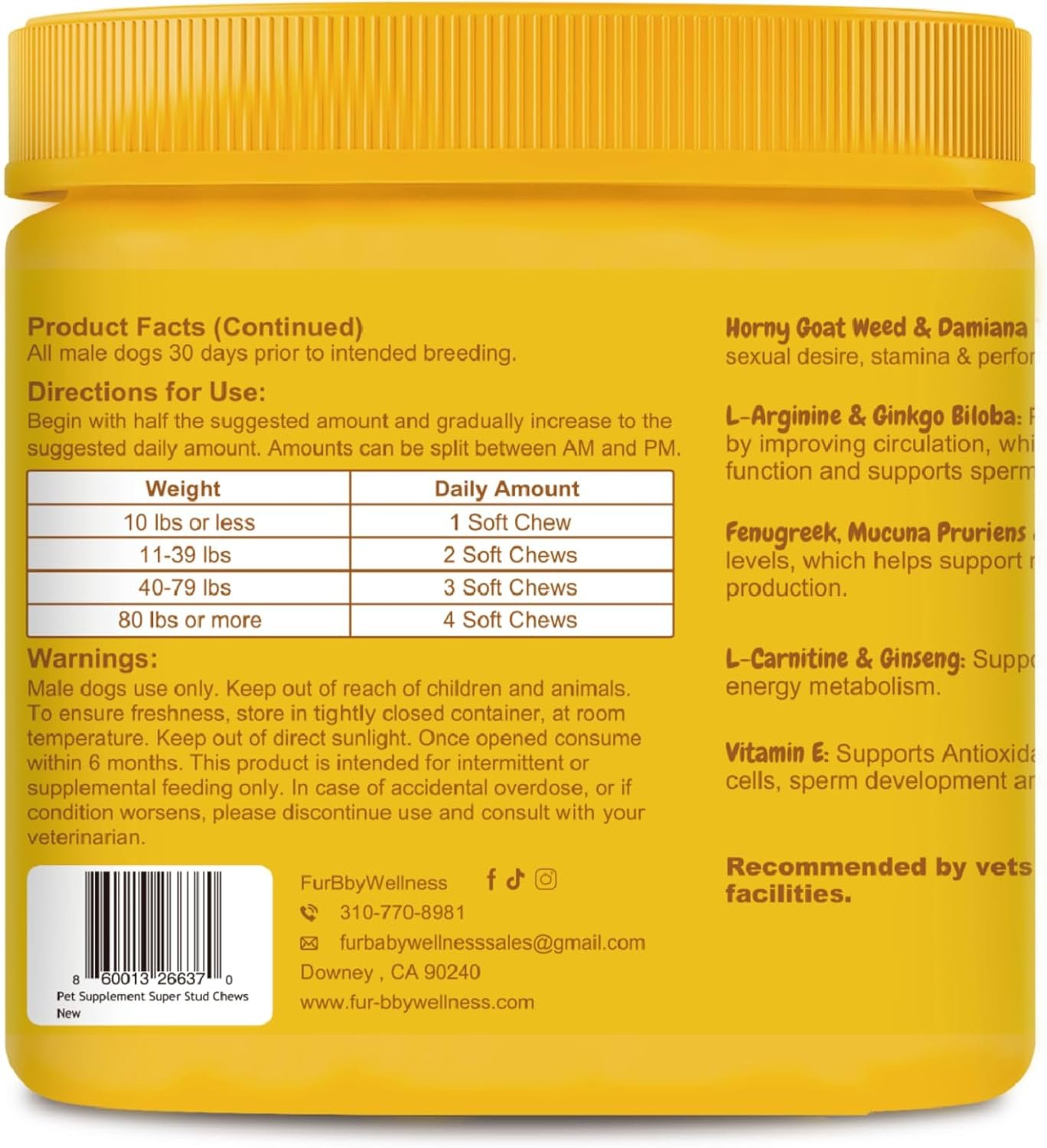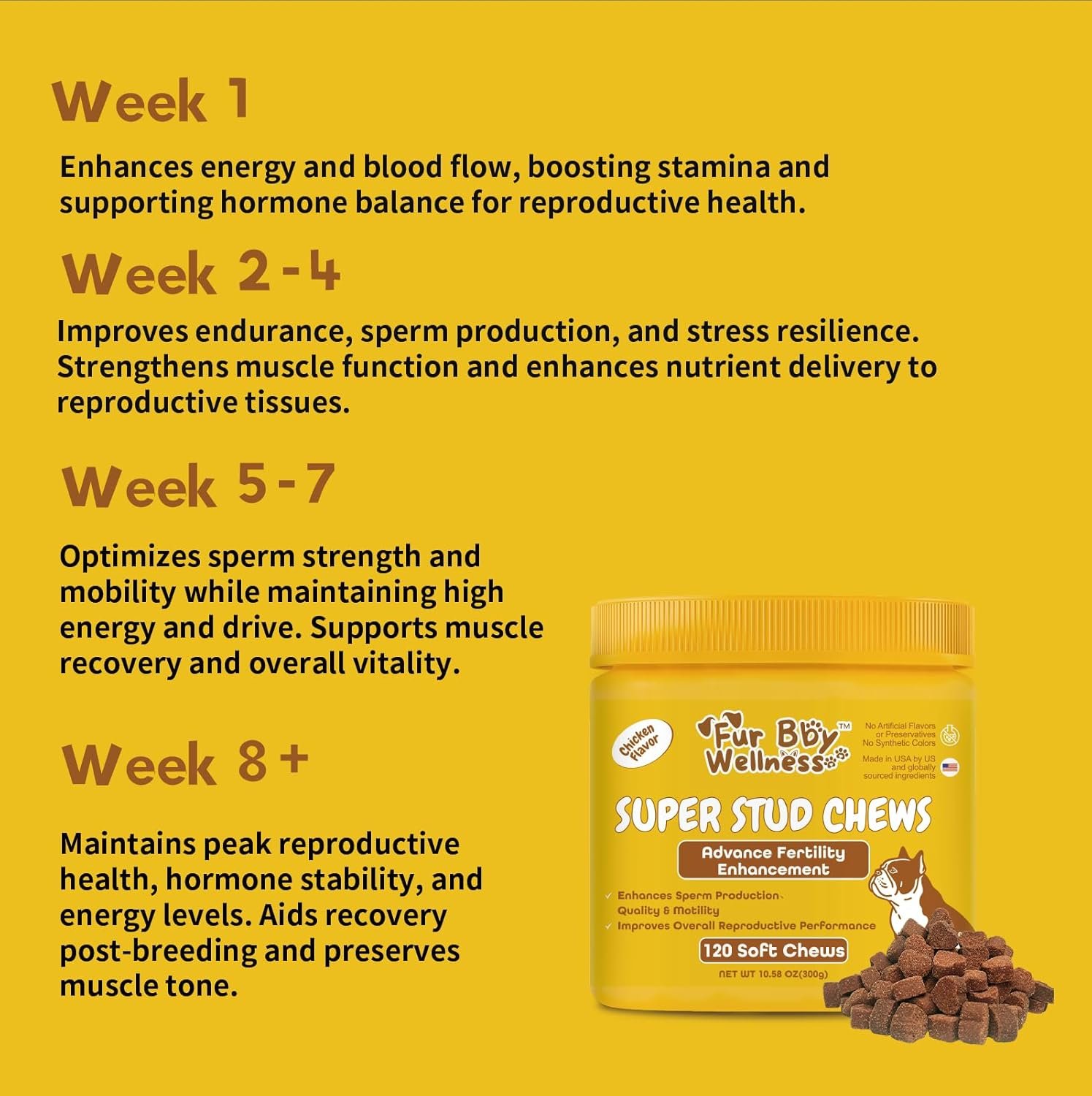 Supports Testosterone & Vitality – With Fenugreek, Zinc, and Mucuna Pruriens, these chews encourage natural testosterone production and improve breeding outcomes.