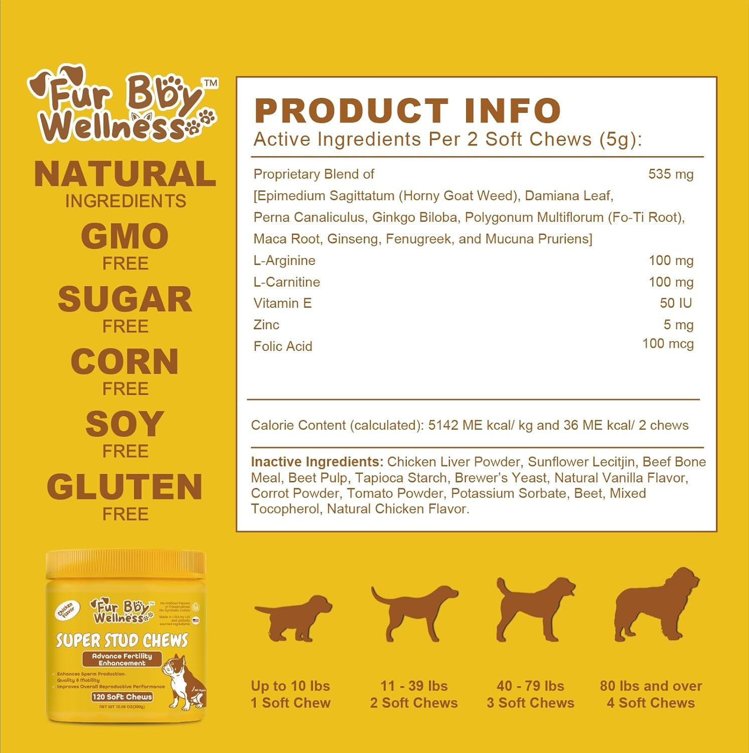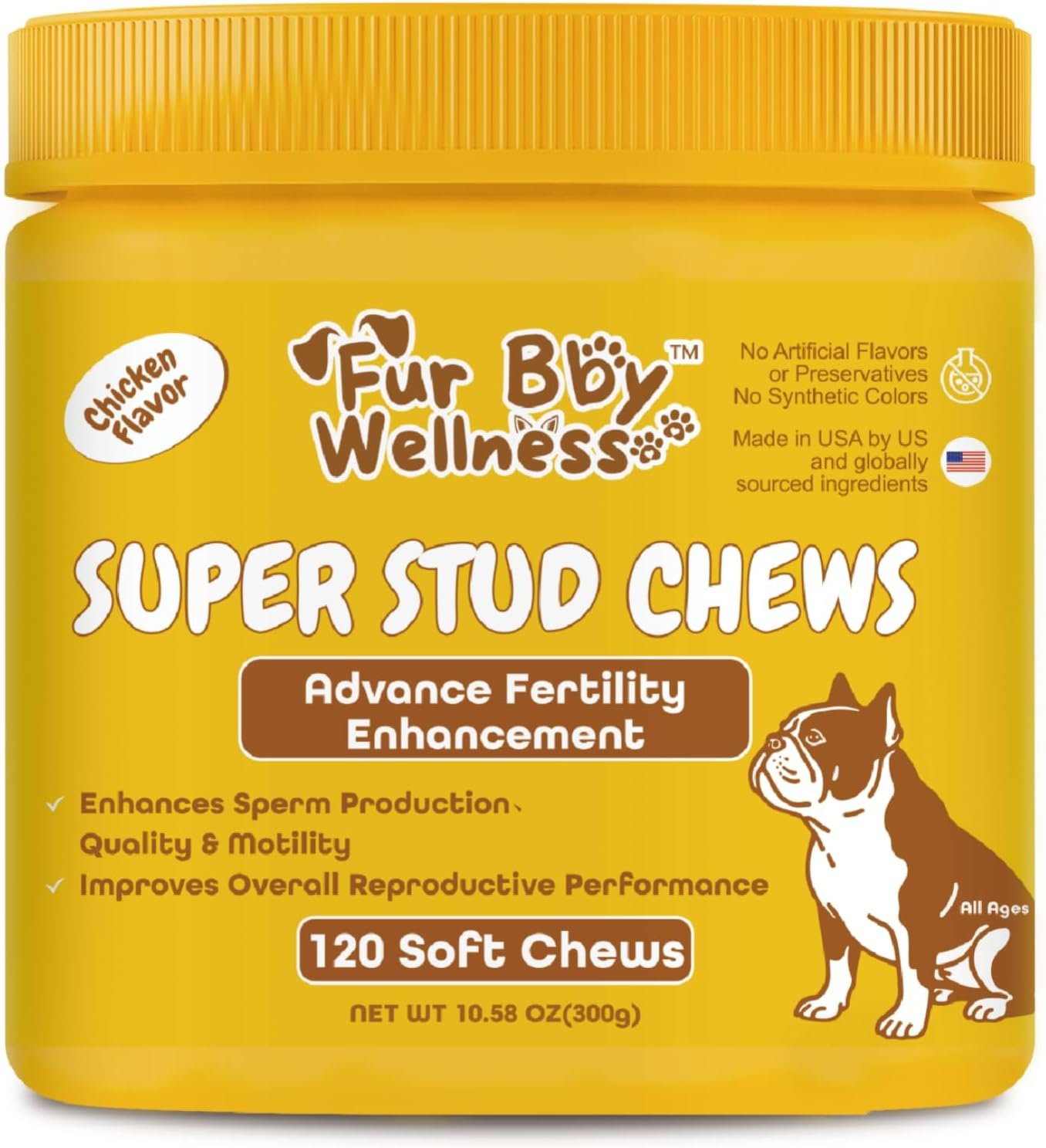 Support your dog’s reproductive health and breeding performance with our Reproductive Health Supplement for Dogs — a premium blend of natural ingredients, vitamins, and amino acids designed to optimize fertility, sperm quality, and overall vitality. Whether you are preparing your stud dog for breeding or helping him recover post-breeding, these soft chews provide the targeted support he needs during this demanding stage. ✅ Enhances Fertility & Libido – Our formula includes Horny Goat Weed and Damiana Leaf, known to boost sexual desire, stamina, and performance naturally. ✅ Promotes Healthy Sperm Function – With L-Arginine and Ginkgo Biloba, this supplement improves blood flow and erectile function, ensuring efficient sperm transport. ✅ Supports Testosterone Production – A potent mix of Fenugreek, Zinc, and Mucuna Pruriens encourages healthy testosterone levels, aiding reproductive health. ✅ Boosts Sperm Motility & Energy – L-Carnitine and Ginseng energize sperm cells, improving motility and overall reproductive outcomes. ✅ Antioxidant Protection – Vitamin E and Folic Acid safeguard sperm cells, aid DNA synthesis, and protect against oxidative damage for stronger reproductive performance. Our Reproductive Health Chews are made with carefully chosen natural ingredients to help your dog thrive. They’re tasty, easy to feed, and suitable for dogs of all breeds and sizes. Why Choose Us? Expertly crafted formula for reproductive health & vitality Natural ingredients with no unnecessary fillers Supports fertility, stamina, and breeding performance Easy-to-feed soft chews dogs love Usage: Start with half the recommended amount and gradually increase to the full daily dose. For best results, split servings between morning and evening. Always consult your veterinarian before use, especially if your dog has specific health conditions. Give your dog the natural boost he needs with our Reproductive Health Supplement — the trusted choice for breeders and pet parents who want the best for their dogs.