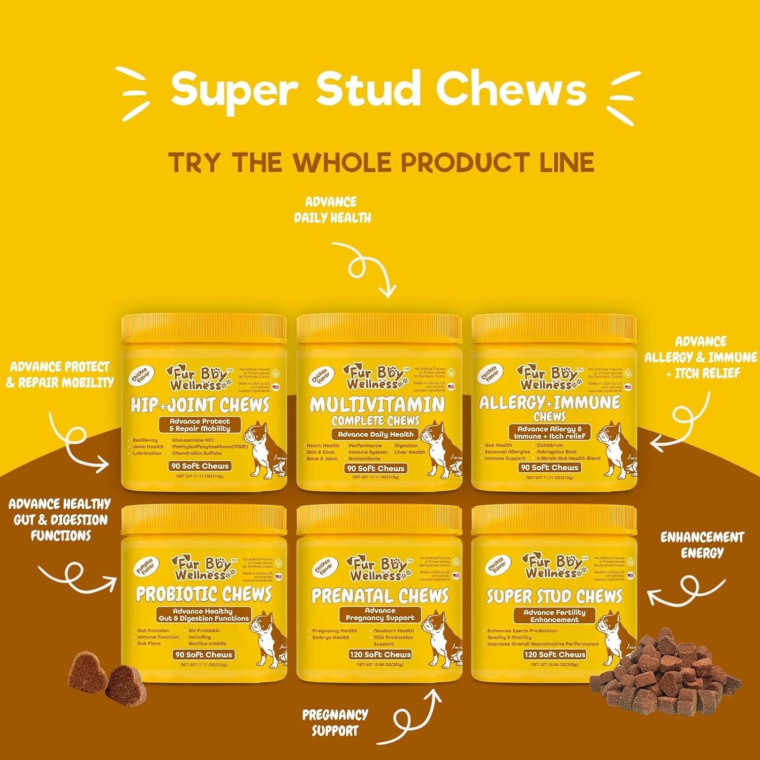 Advanced Fertility Support – Specially formulated fertility chews for breeding dogs to enhance reproductive health, performance, and stamina.