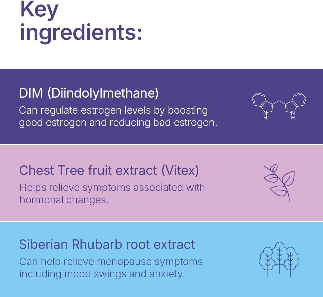 Siberian Rhubarb + Chest Tree Fruit Extract + DIM: The formula of Hormonal Balance contains three of the best natural ingredients, clinically proven to help alleviate the common symptoms.