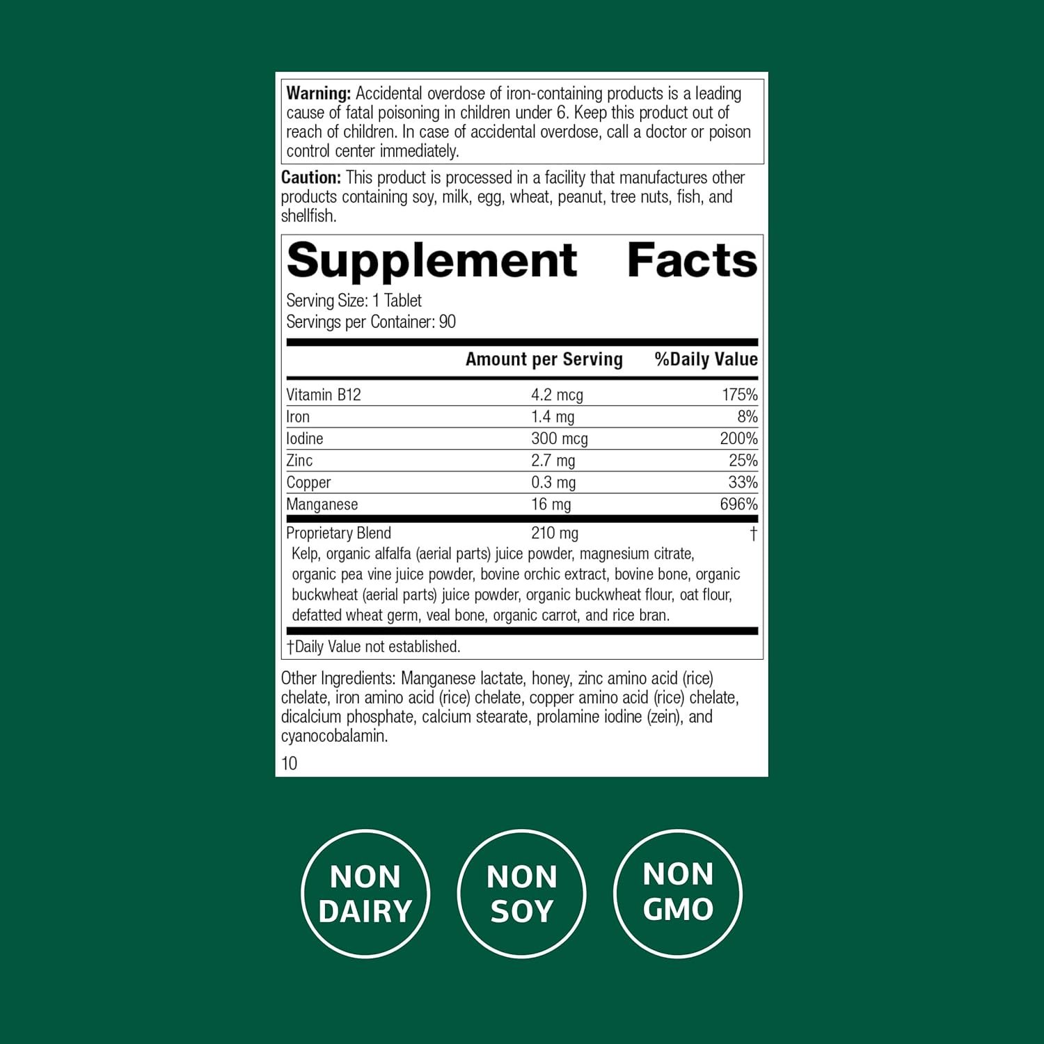 Supports Enzymatic Reactions: Trace Minerals-B12 combines important nutrients to support enzymatic reactions in the body; this vitamin and mineral supplement is an excellent source of vitamin B12, iodine, zinc, copper and manganese*