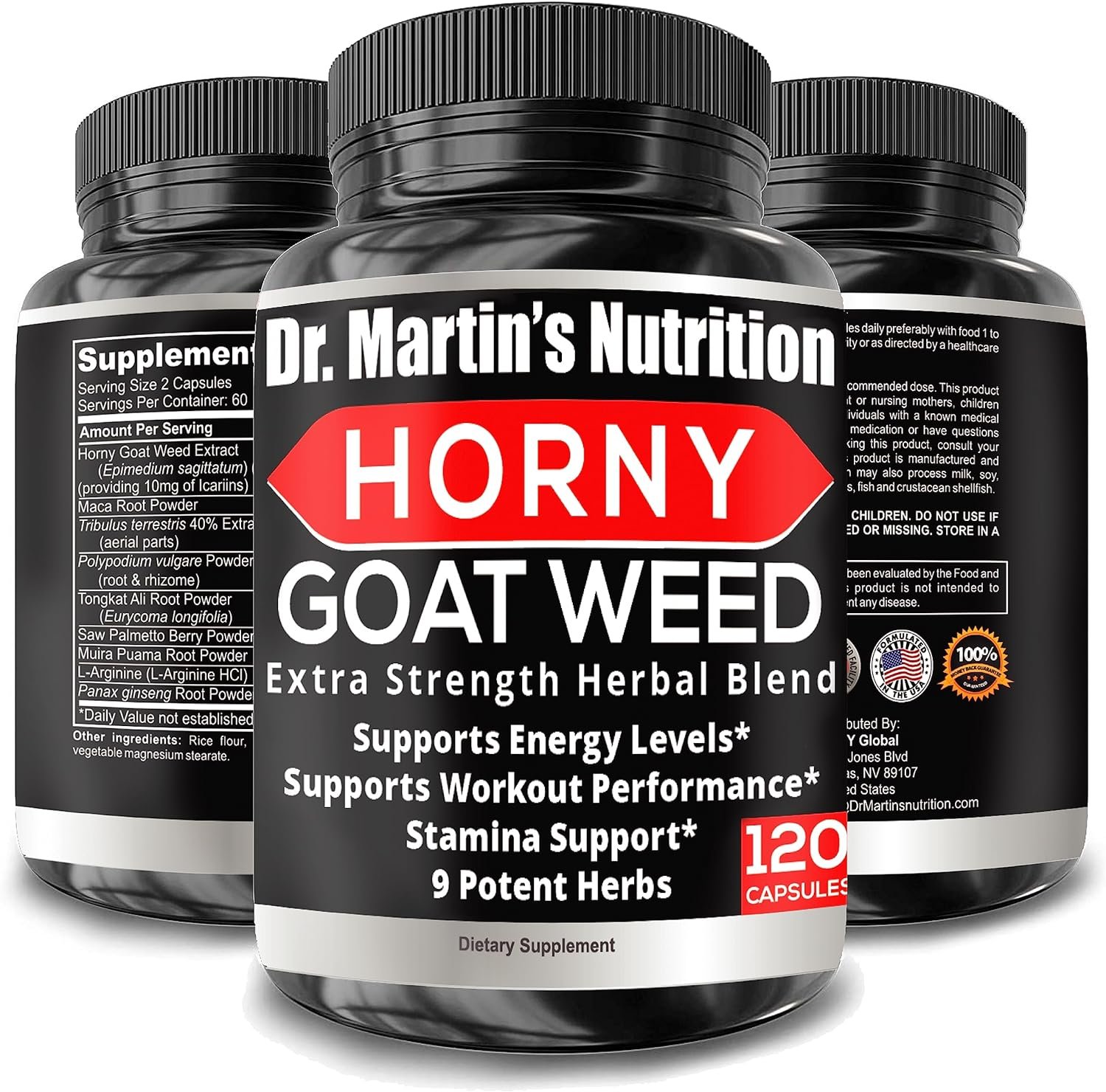 9 POTENT INGREDIENTS TO MAXIMISE YOUR PERFORMANCE: We’ve added only the best herbs to our Powerful Horny goat weed which includes L Arginine, Maca Root, Ginseng ,Tribulus Terrestris, Muira Puama, Tongkat Ali, Saw Palmetto & More. All of these combined together make this a powerful energizing complex for a wide range of benefits.