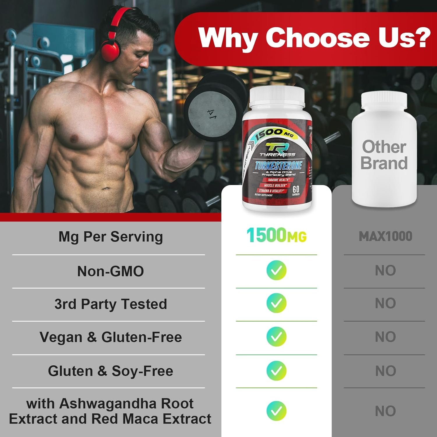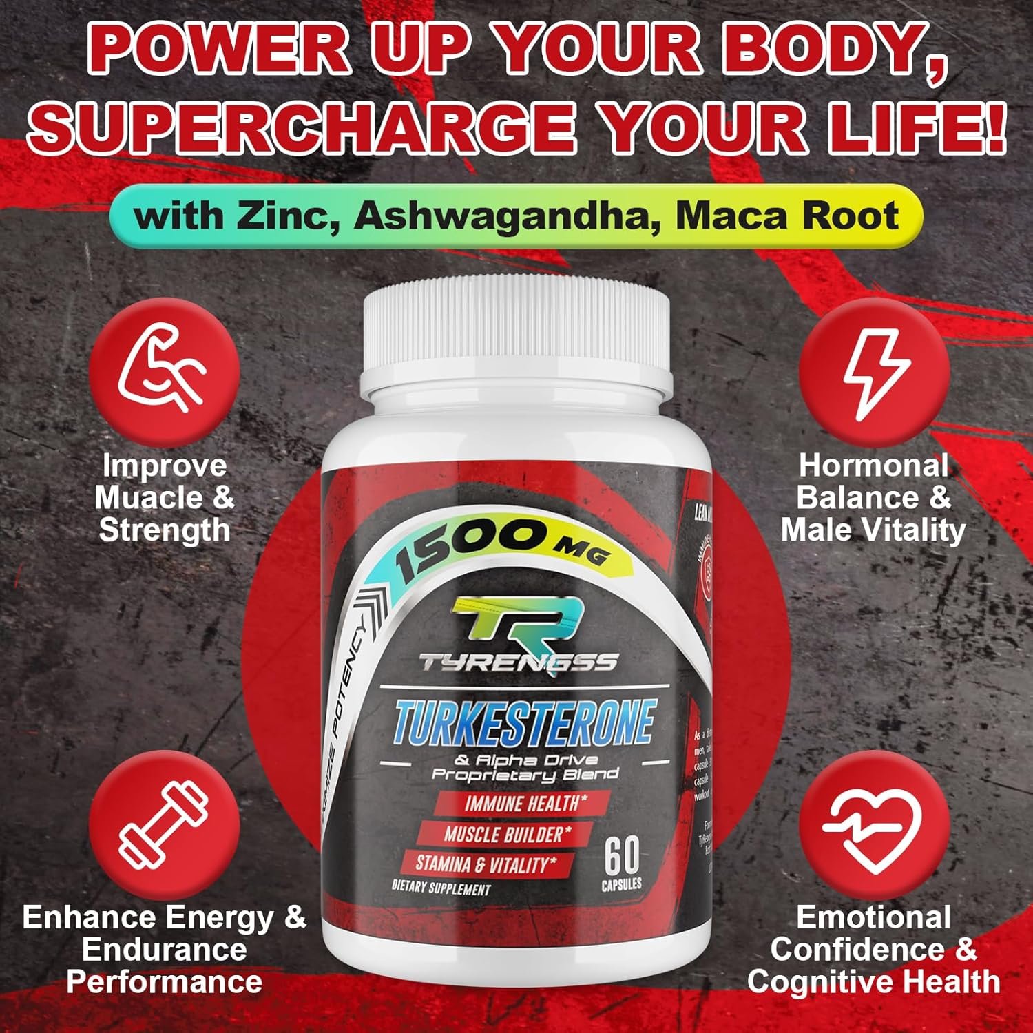 Unleash Raw Strength: TyRengss testosterone supplement for men, 45,000mg per bottle, powered by turkesterone, zinc, ashwagandha, and naca root to boost your body’s natural testosterone levels. Support muscle growth, manage cortisol levels, and enhance performance and energy, helping you conquer workouts and tackle daily challenges with confidence