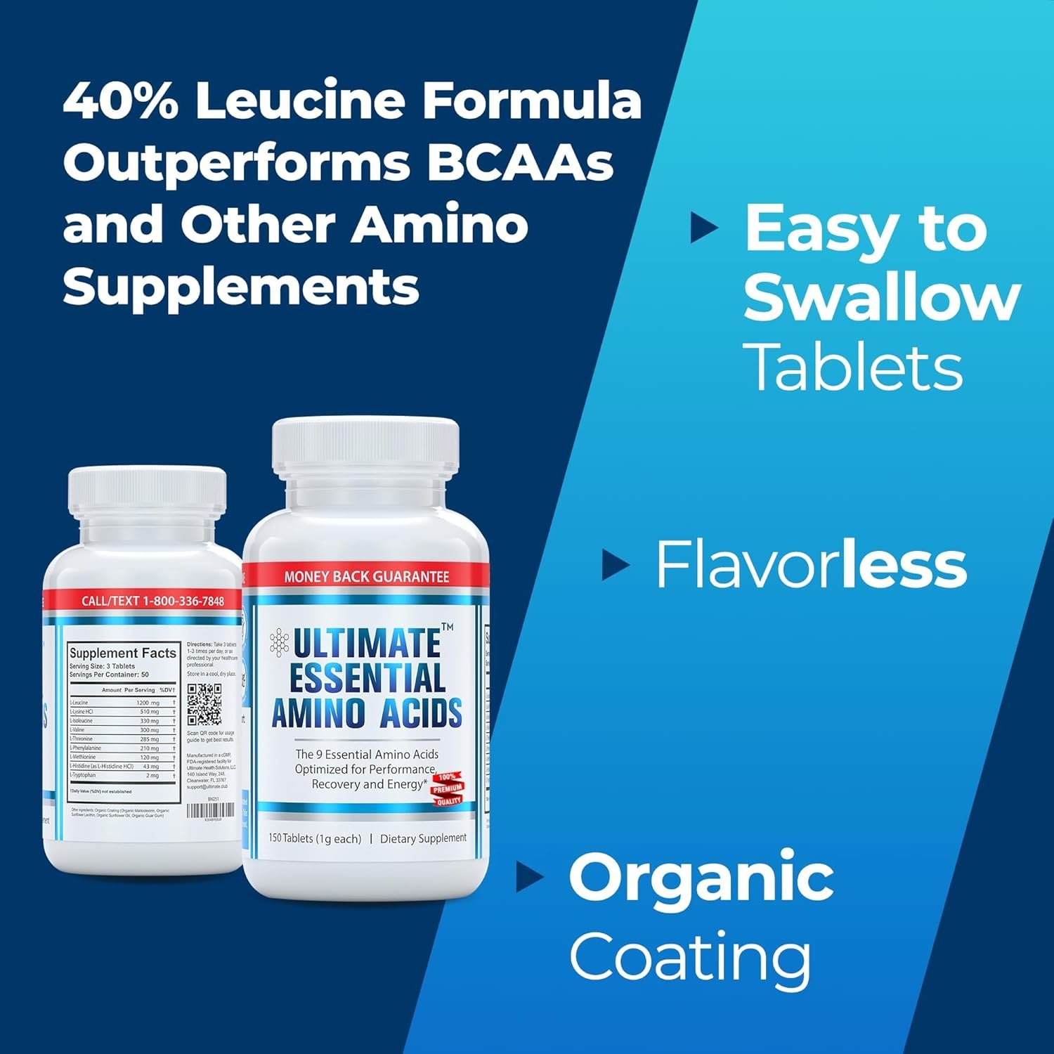 𝗙𝗟𝗔𝗩𝗢𝗥𝗟𝗘𝗦𝗦 & 𝗘𝗔𝗦𝗬 𝗧𝗢 𝗦𝗪𝗔𝗟𝗟𝗢𝗪: Our nutritional tablets are designed to be tasteless and easy-to swallow. With our certified organic, vegan coating. you can have all of the aminos with none of the aftertaste. Our advanced, binder-free tablet process also allows us to pack more aminos per tablet, giving you more amino acids without taking a bunch of extra pills. Click “Add to Cart” Now!