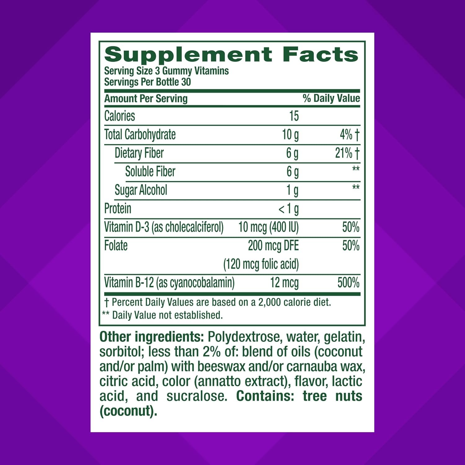 Excellent source of Fiber (6g) Per Serving. Contains Vitamin D3 to support bone health(1). Contains Vitamins B12 and Folate to support energy metabolism(1).