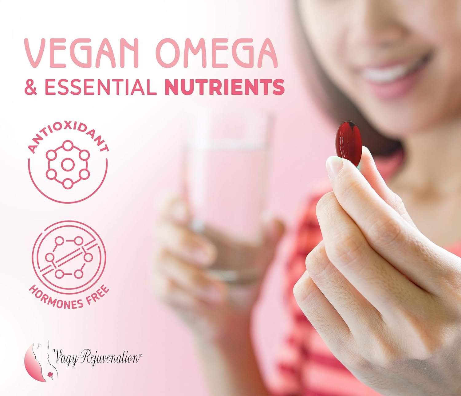 Whole-Body Benefits: Not only does this supplement target vaginal moisture, but it also improves skin and hair health while contributing to enhanced mental clarity, thanks to its antioxidant-rich and essential fatty acid formula.