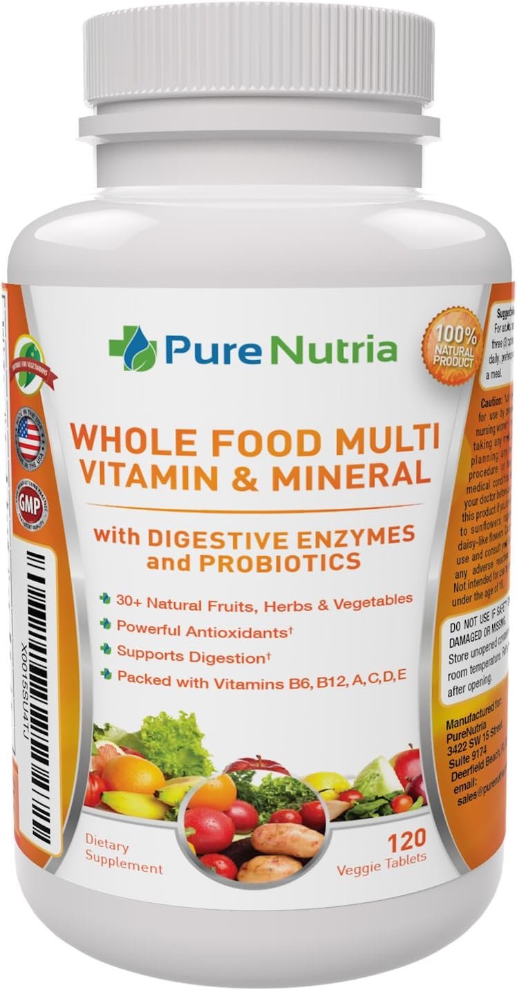 PureNutria Whole Food MultiVitamin and Minerals with Probiotic Enzymes has been designed as a comprehensive Nutrient Optimization System complete with digestive enzymes and probiotics.