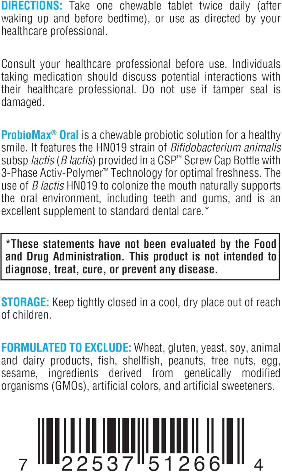 Packed for Optimal Freshness – This dental probiotic supplement features the HN019 strain of Bifidobacterium animalis subsp lactis (B lactis). It is provided in a CSP screw cap bottle with three-phase Activ-Polymer technology to ensure it’s packed as fresh as possible.