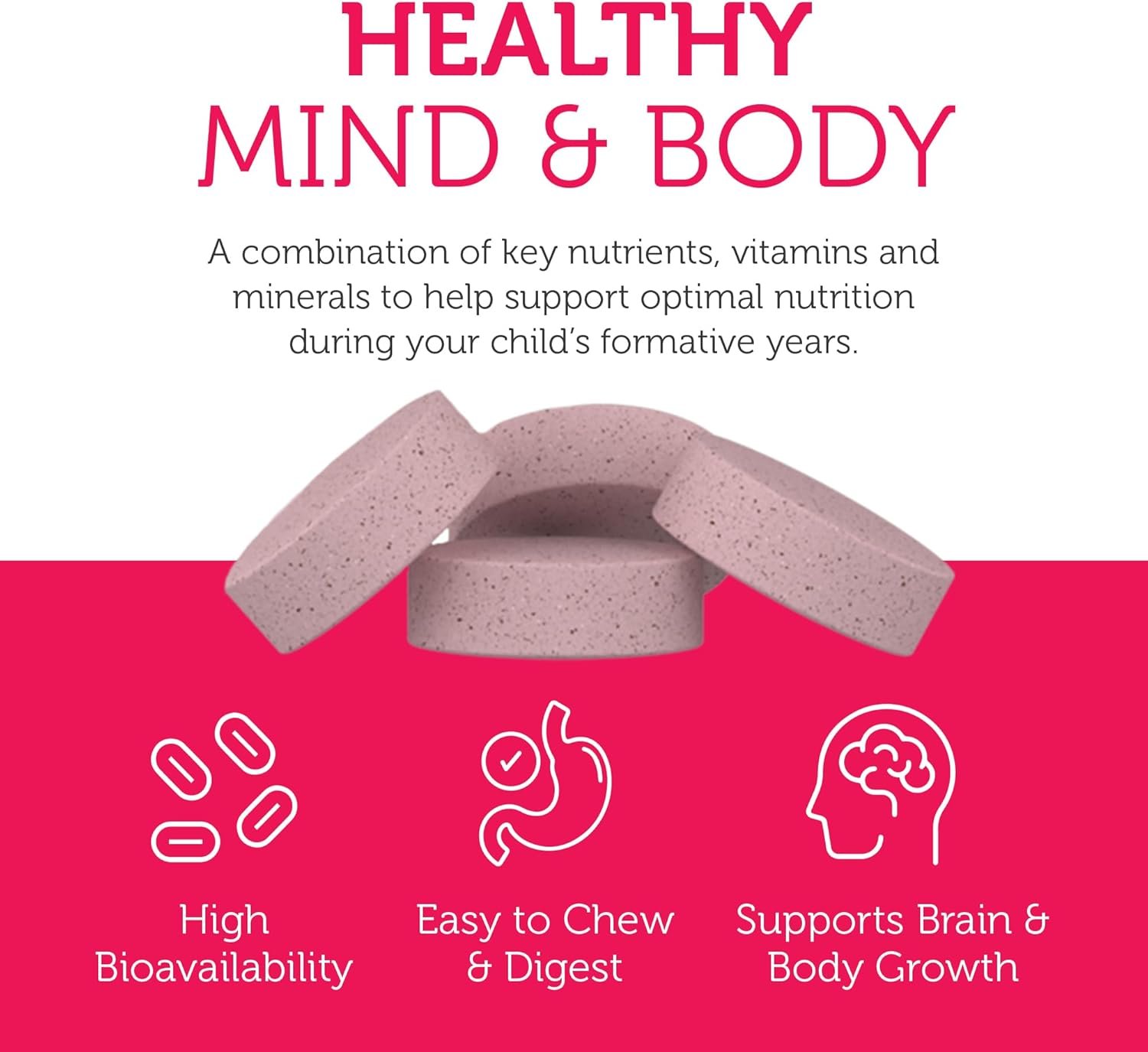 MINDS & BODIES – Our junior multi has over 20 vitamins and minerals to help support growth of the brain and body in children of all ages. For children 4 – 6 years old: take 1 tablet daily. For children 7 years and older: take 1 tablet twice daily.